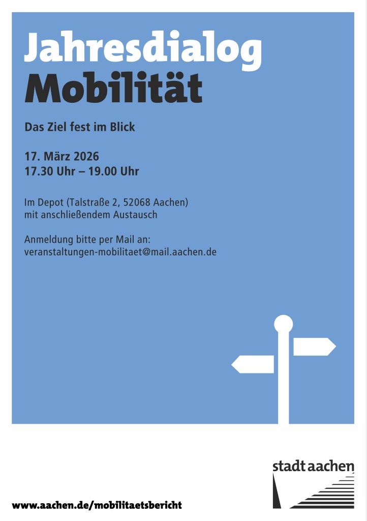 Der 2. Jahresdialog Mobilität der Stadt Aachen findet statt am Dienstag, 17. März, von 17.30 bis 19 Uhr, im Depot (Talstraße 2).
