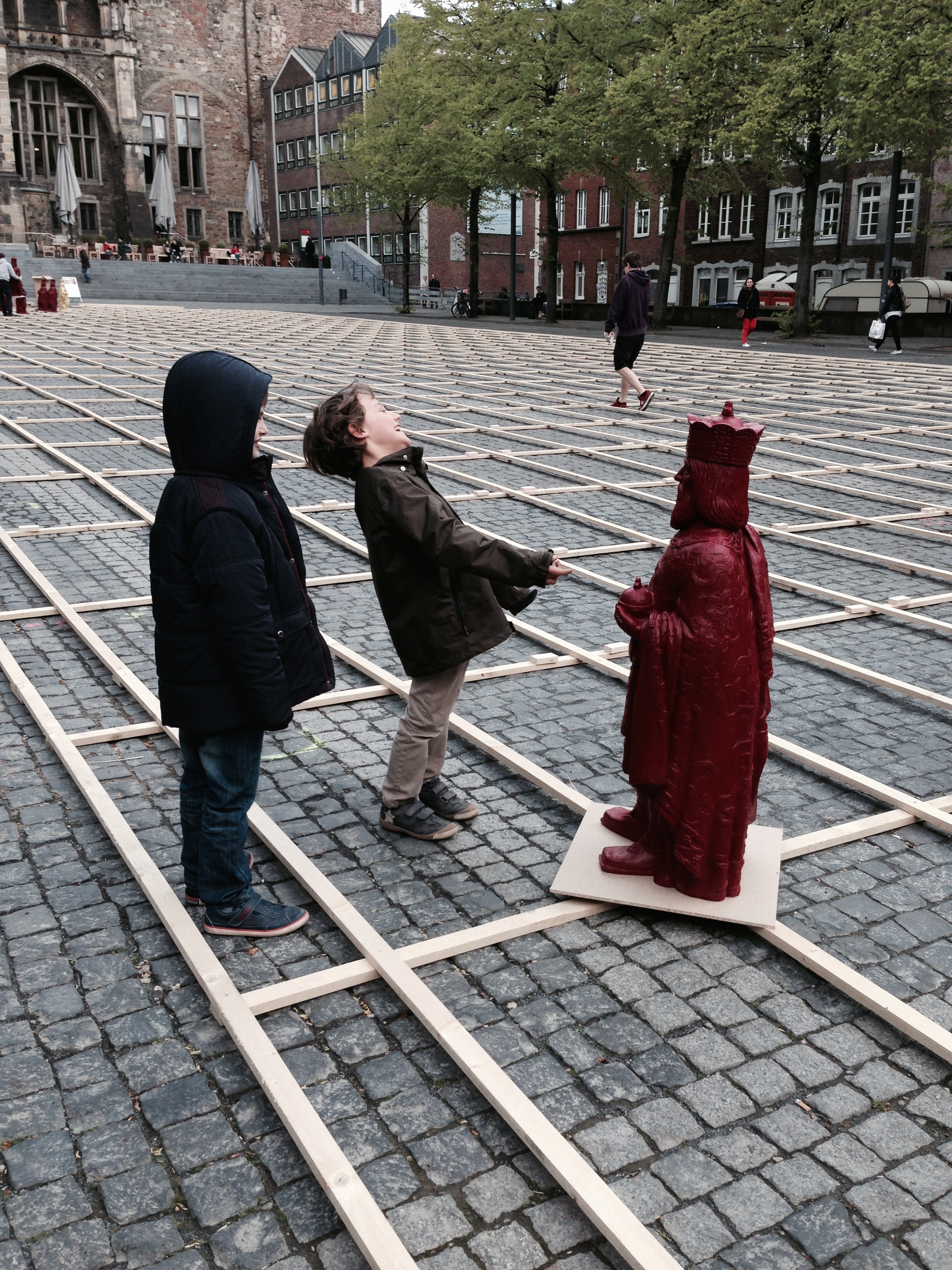 Normalerweise ist da eine kleine Verlängerung fällig. Aber die ist wohl deshalb nicht drin: Der Katschhof muss frei sein, weil am 30. April die Bundeskanzlerin dort Werbung für die CDU machen wird. Die Kommunalwahl und die Europawahl sind wichtiger. Also weg mit der Kunst.