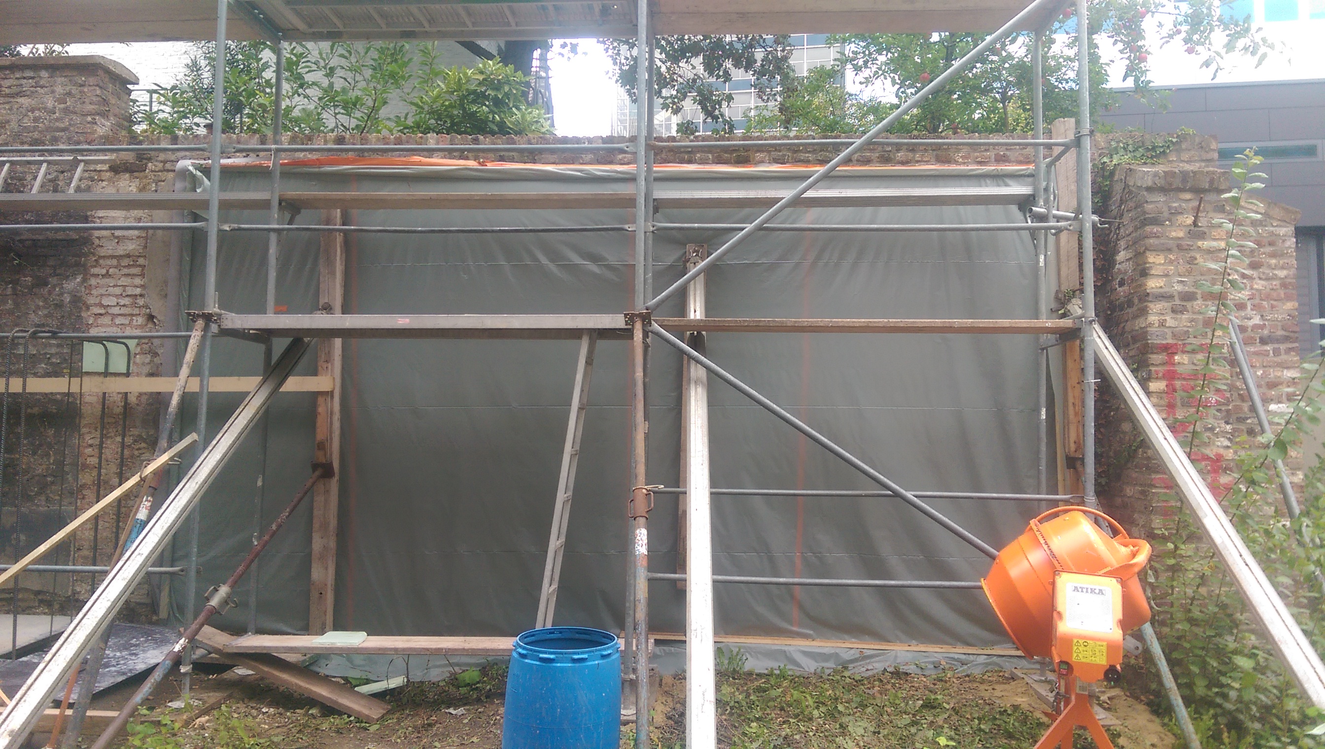 Dabei ist der Zustand des Bildes „Zwischen den Tagen“ kritisch. Es wurde nicht unmittelbar auf Mauerwerk aufgetragen, sondern auf eine sandige Putzfläche, die sich wiederum auf dem Mauerwerk befindet. Das Bild zu konservieren, das ist sehr aufwendig. Allerdings sind jetzt Experten vor Ort. Auch das Wandbild „Der große Krieg“, ein paar Meter weiter, ist noch nicht verloren. Für dieses Bild werden in Kürze ebenfalls Anstrengungen unternommen. Hier soll aber jetzt nicht vollmundig rumtrompetet werden. Besser wäre es, es würden sich noch mehr Mitstreiter finden. Die sollten sich regelmäßig um die Bilder kümmern: um die zwei vom Augustinerbach, das vom Café Kittel und ein weiteres sehr gut erhaltenes in der Mörgensstraße.