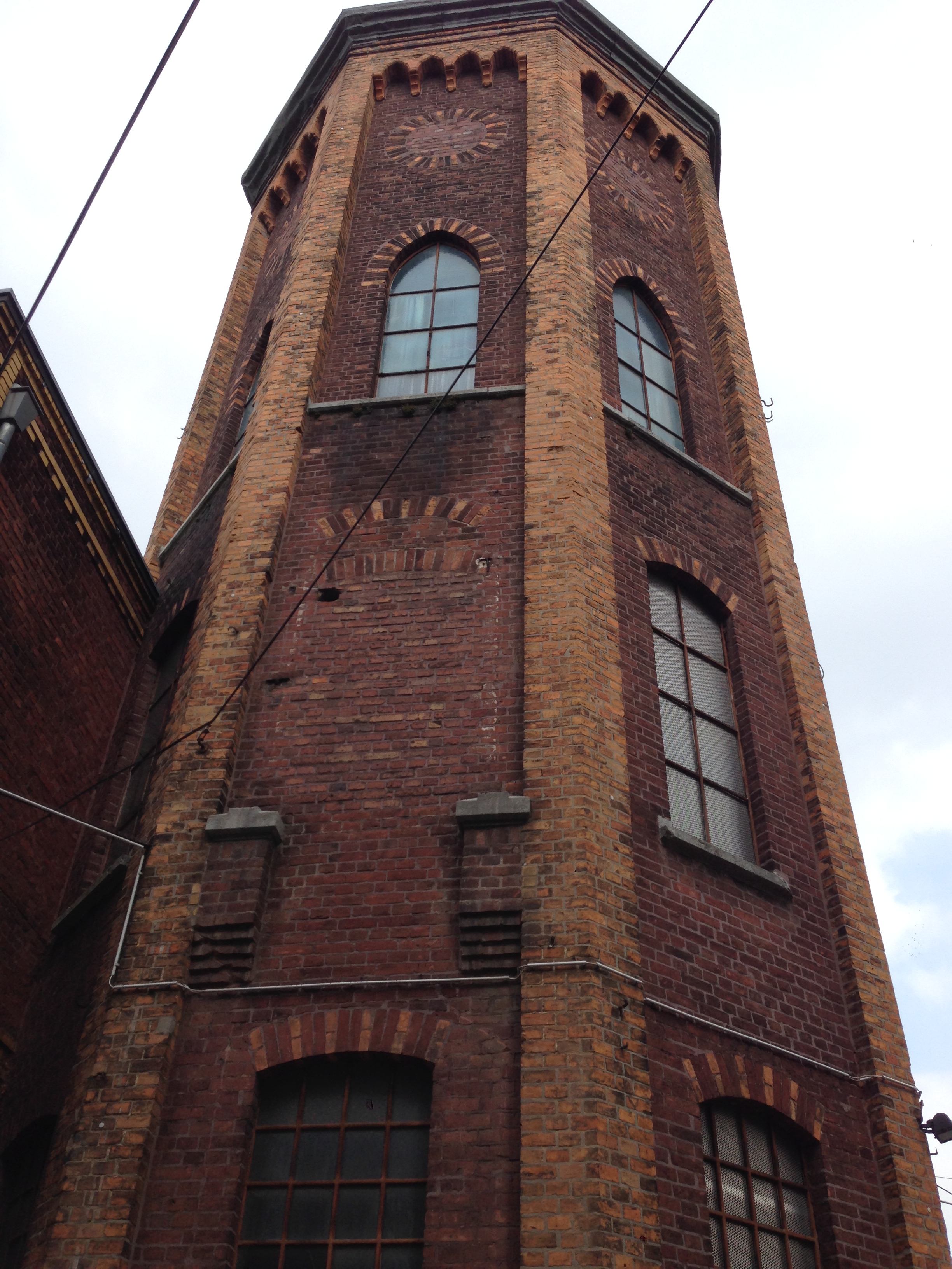Die ganze Tuchfabrik-Anlage soll 1873/74 erbaut worden sein. Später wurde sie erweitert. Jetzt sind dort Unternehmen ansässig, doch die haben die Bausubstanz nicht wesentlich verändert oder gar beschädigt. Der Turm ist das einzige Gebäude auf dem großen Gelände, das unter Denkmalschutz steht. Alles andere kann abgerissen werden. Dabei gibt der Turm für sich allein gar keinen Sinn. Der Turm braucht für seinen Denkmalcharakter die historische Umgebung.