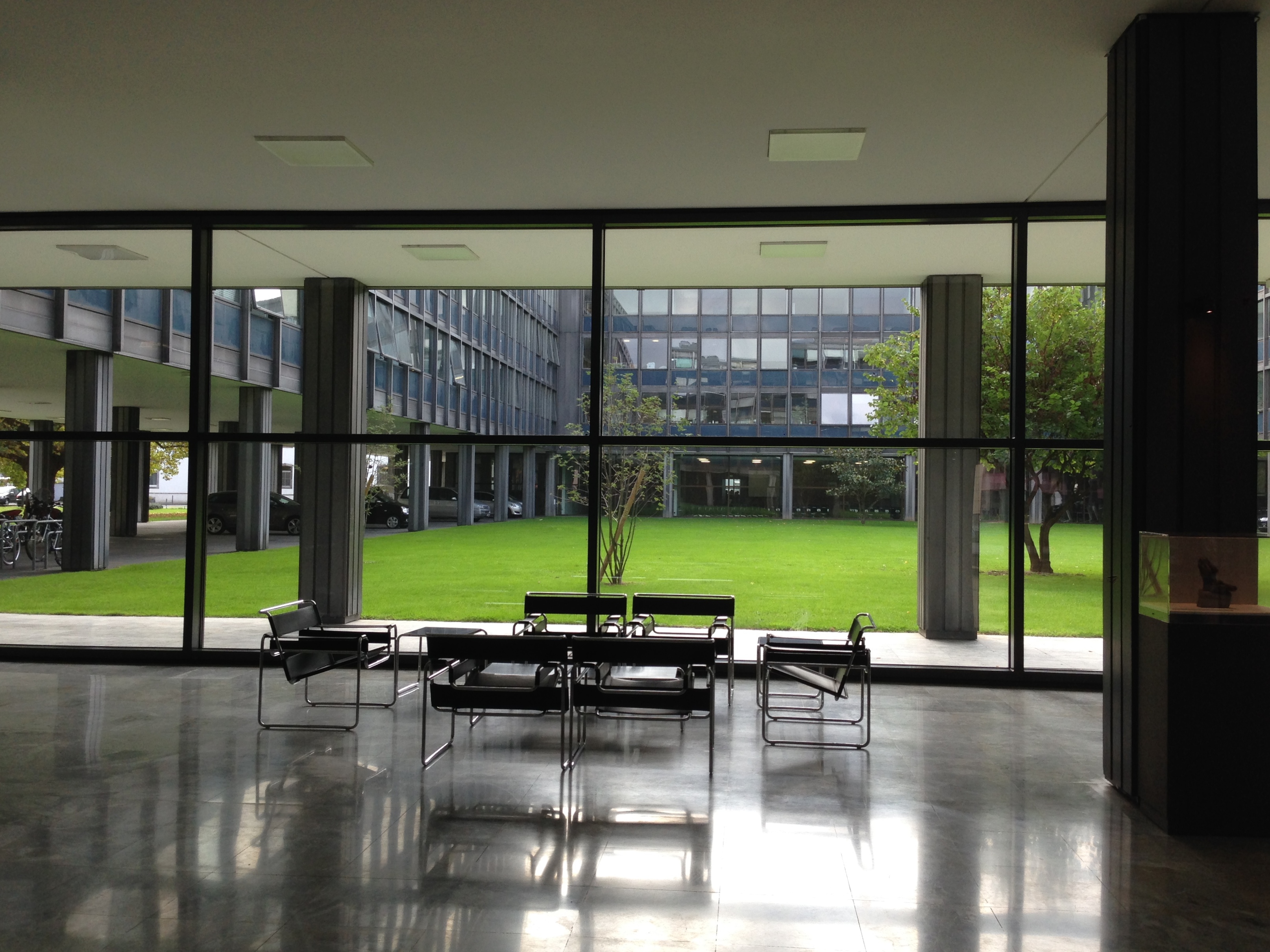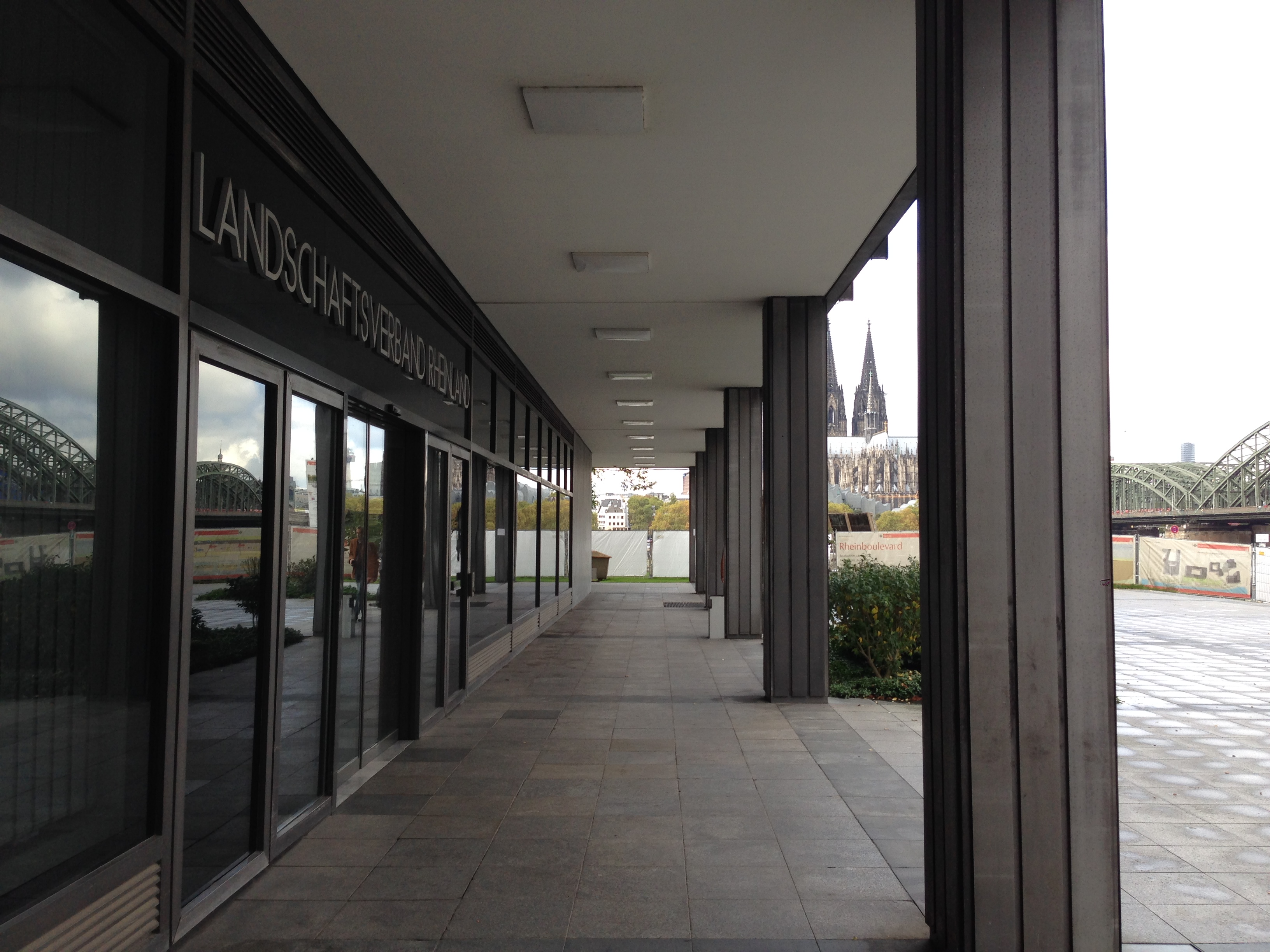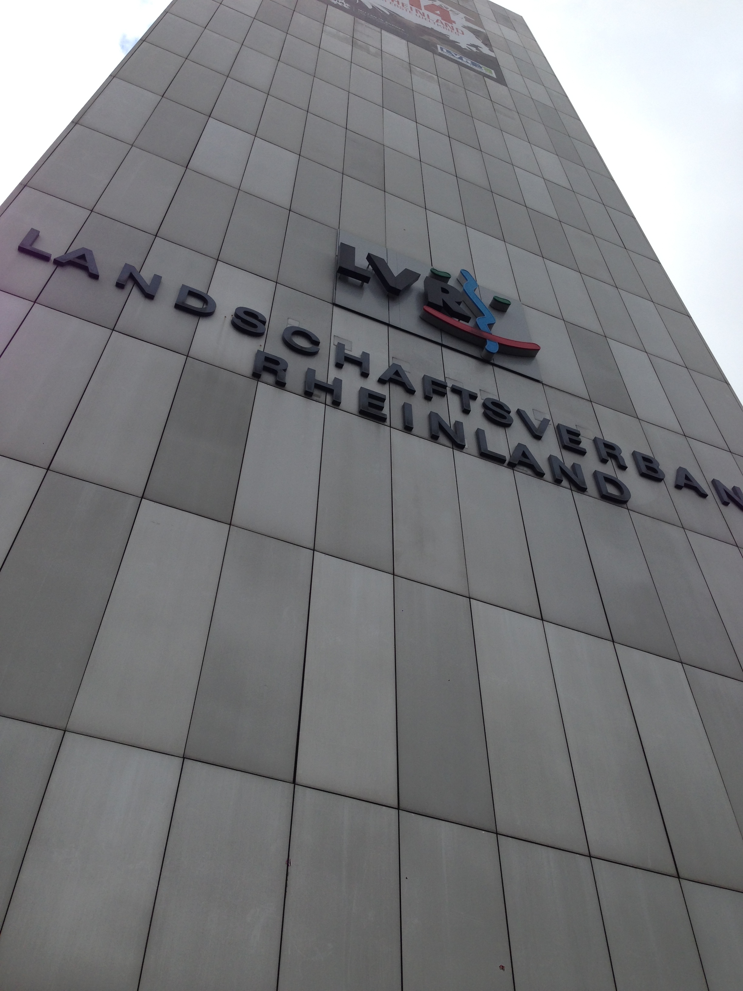 Ich hatte schon bei der Ankunft in Köln zwei riesenhafte Gebäude bestaunt und mich gefragt, was da drin wohl stattfindet. Und war schon – typisch Margret aus Monschau – ins falsche hochglänzende, lichtdurchflutete Foyer hineinspaziert. Ein Foyer, groß wie ein halbes Eifeldorf.
