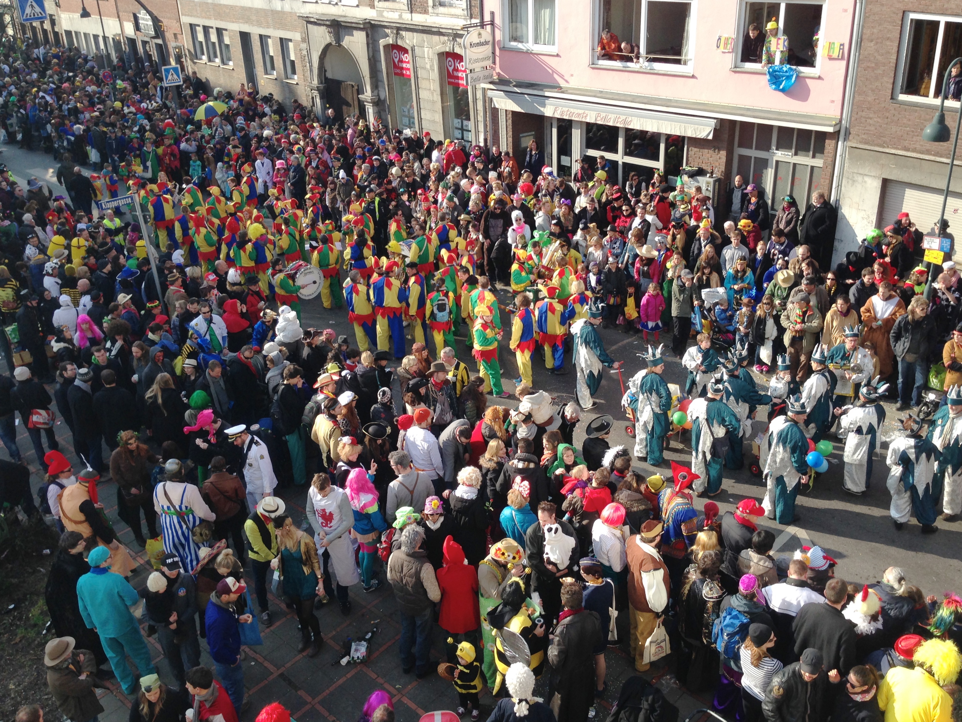 Rosenmontag. Erst fängt es ganz langsam an . . . Es ist 13 Uhr. Ein paar Leute versammeln sich, mehr und mehr kommen hinzu.