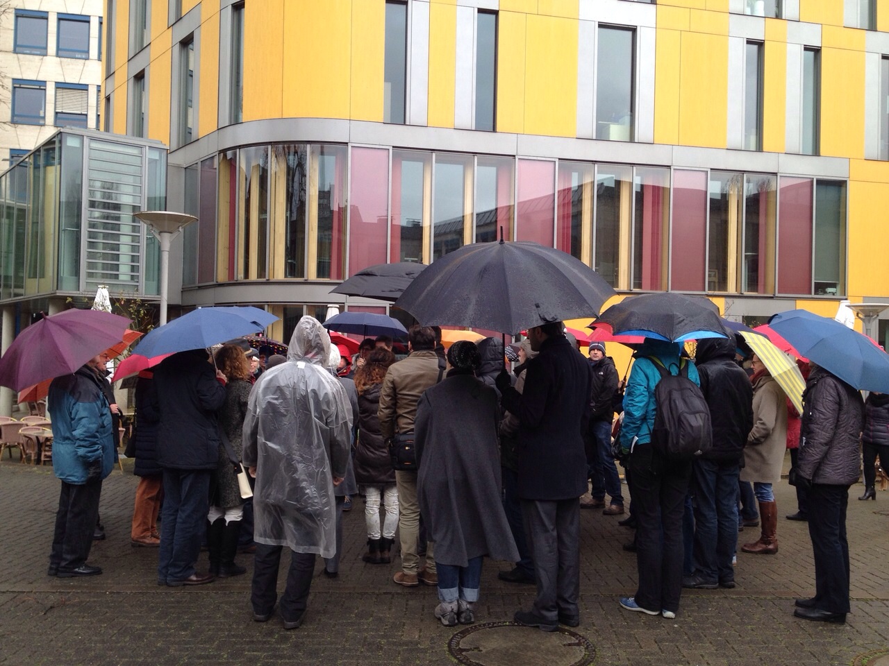 Tolle Sache: In eisiger Kälte und bei Regen haben jetzt Aachener einen geführten Spaziergang durch das Frankenberger Viertel gestartet. Eingeladen hatte die Volkshochschule. Dr. Holger Dux hatte so viel zu berichten, dass man es vom Haus der Städteregion in der Zollernstraße nur bis zur Burg Frankenberg schaffte. Die Führung dauerte zwei Stunden, die sich aber gelohnt haben. Der Regen ließ später ganz nach.