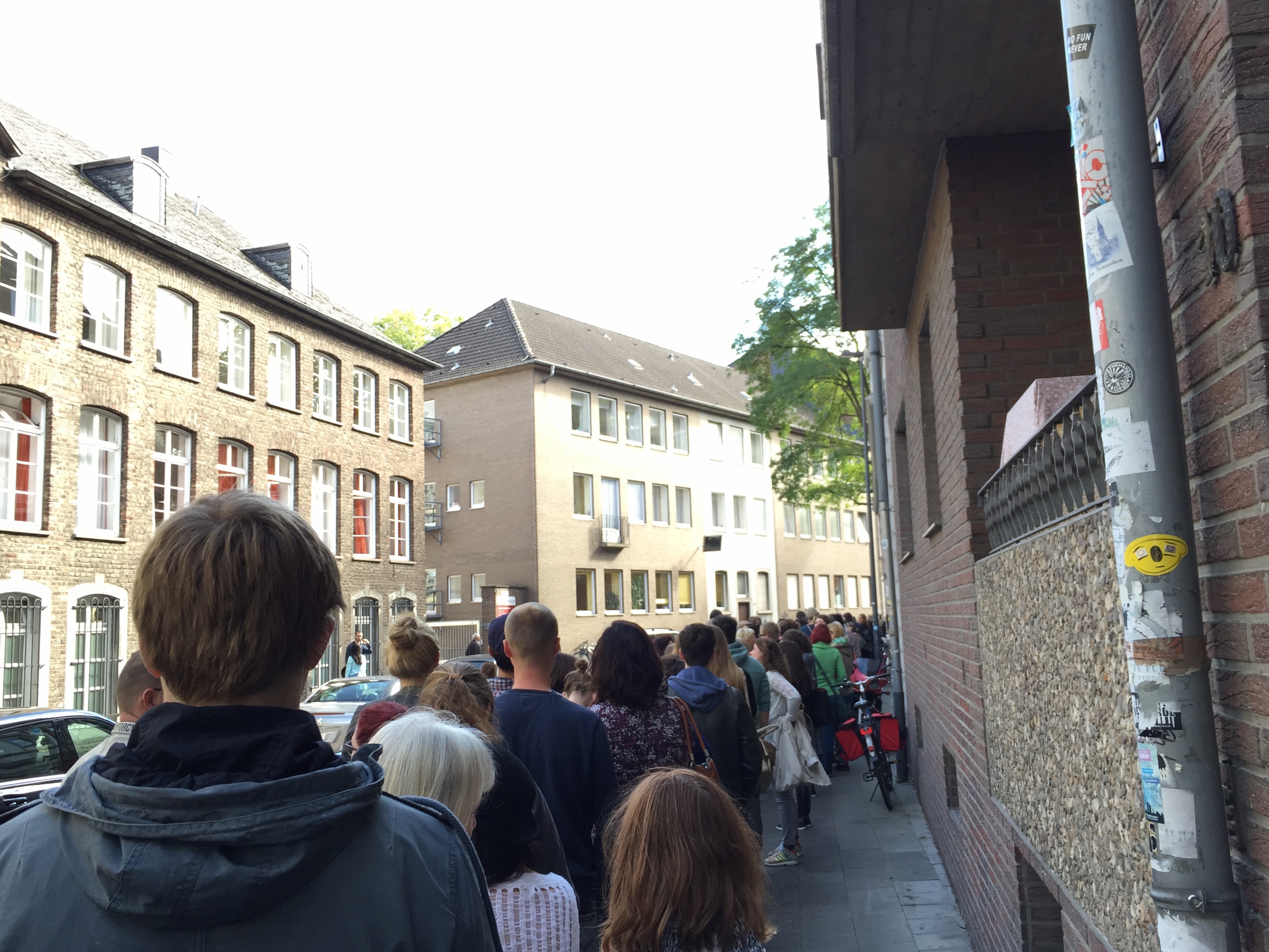 Gestern gegen 14 Uhr in der Mörgensstraße in Aachen: Hunderte wollen Kostüme aus dem Fundus des Stadttheaters kaufen – für wirklich sehr, sehr wenig Geld. Selten habe ich in Aachen eine so lange Schlange wartender Menschen gesehen. Das Angebot war passenderweise gigantisch und preiswert. Zum Beispiel gab es einen bodenlangen, weiten Mantel im Zebra-Look (schon für 5 Euro).