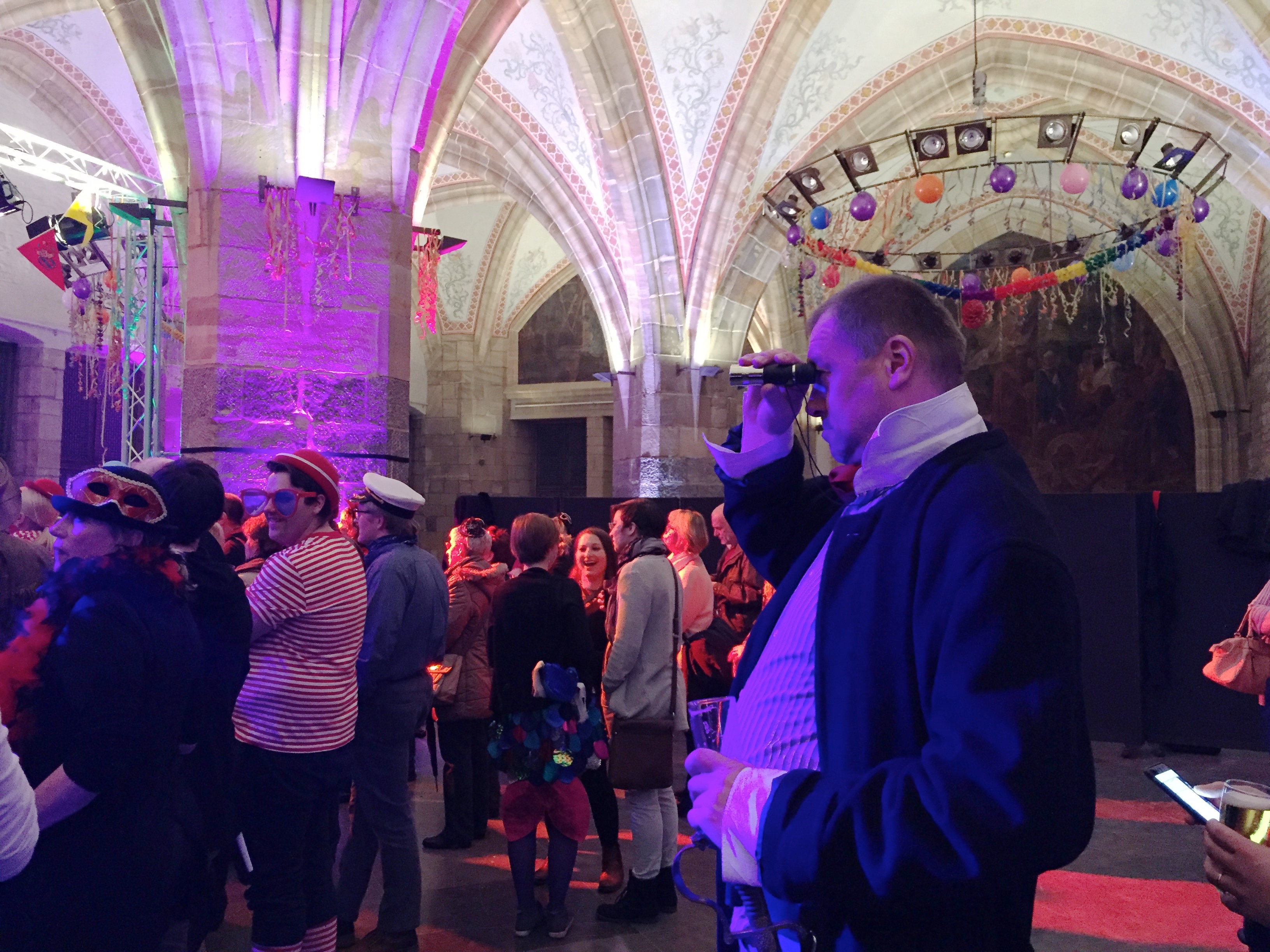 Mutig: Pirat Thomas Buhr versucht, im Karneval von Aachen den Durchblick zu erlangen.
