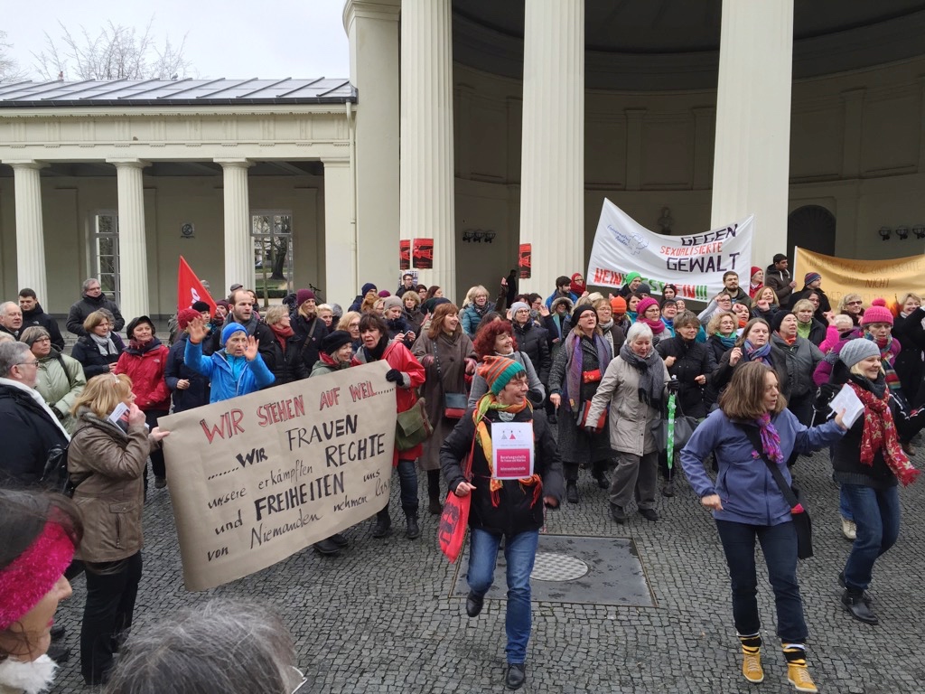 Eine gute Kombi: tanzen & demonstrieren. In Aachen ging es darum, dass Frauen sich gegen Rassismus und Sexismus zur Wehr setzen.