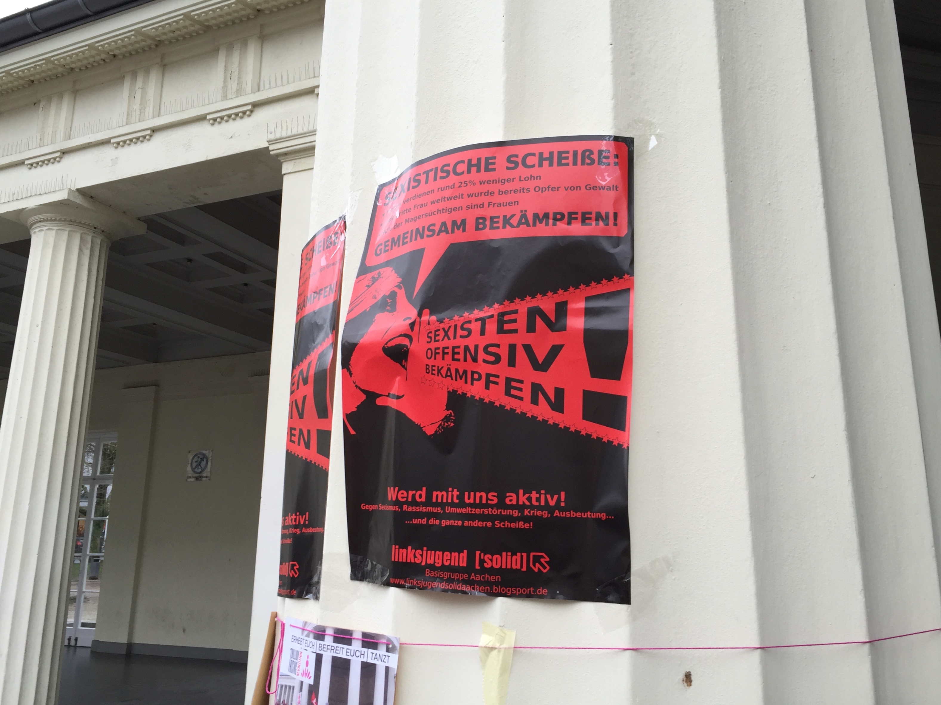 Es war schneidend kalt, doch zum Glück stand auch Tanzen auf dem Programm. Das bewirkte, dass trotz des traurigen Themas die Stimmung gut war. Richtig interessant wurde es, als ein Redner sexistische Werbung anprangerte und Bilder mit Beispielen aus Aachen zeigte.