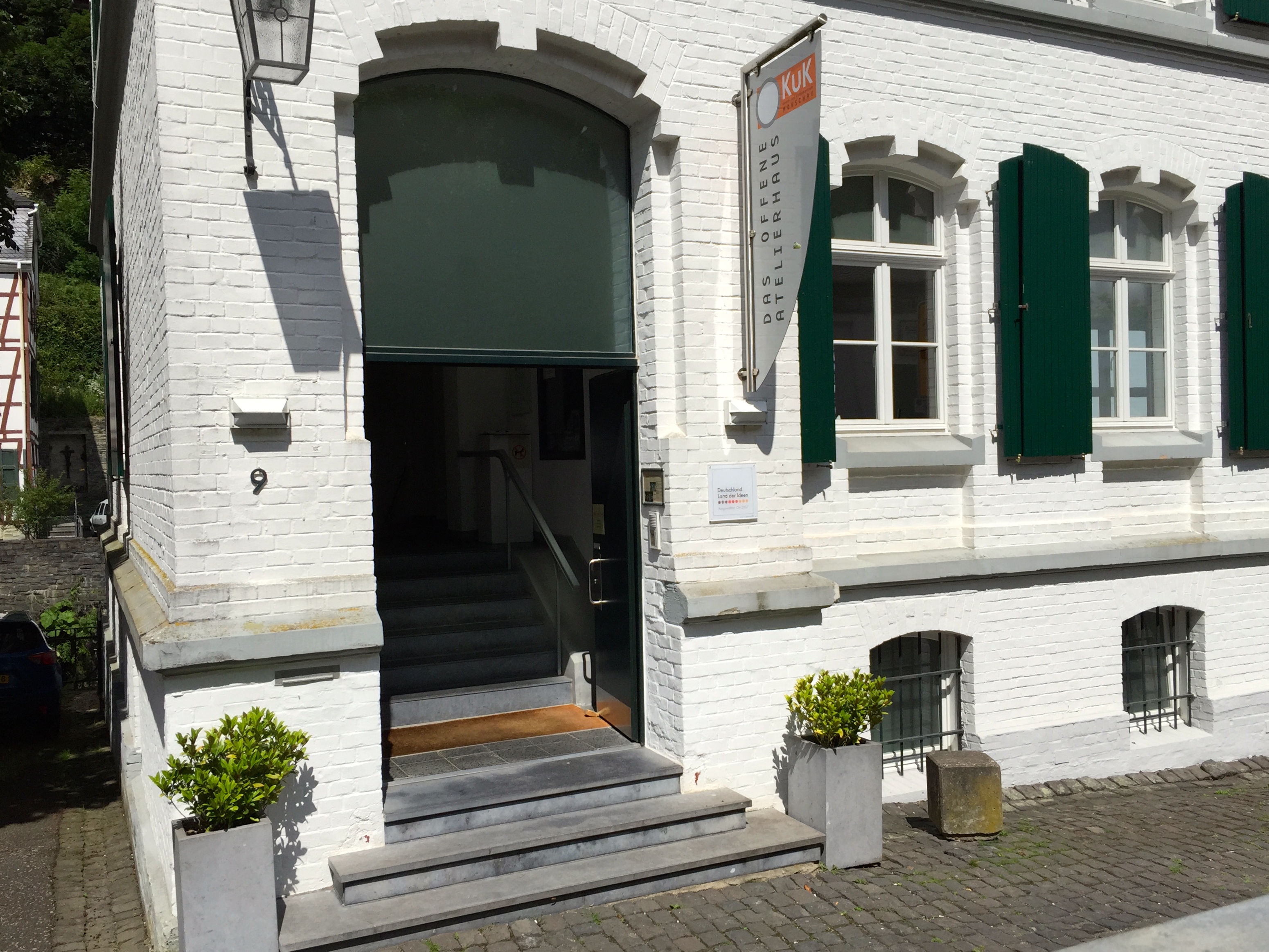 Der Eingang vom KuK in Monschau: Auf drei Etagen wird dort Foto-Kunst präsentiert – auf höchstem Niveau. Das Programm von 2016 findet ihr hier.