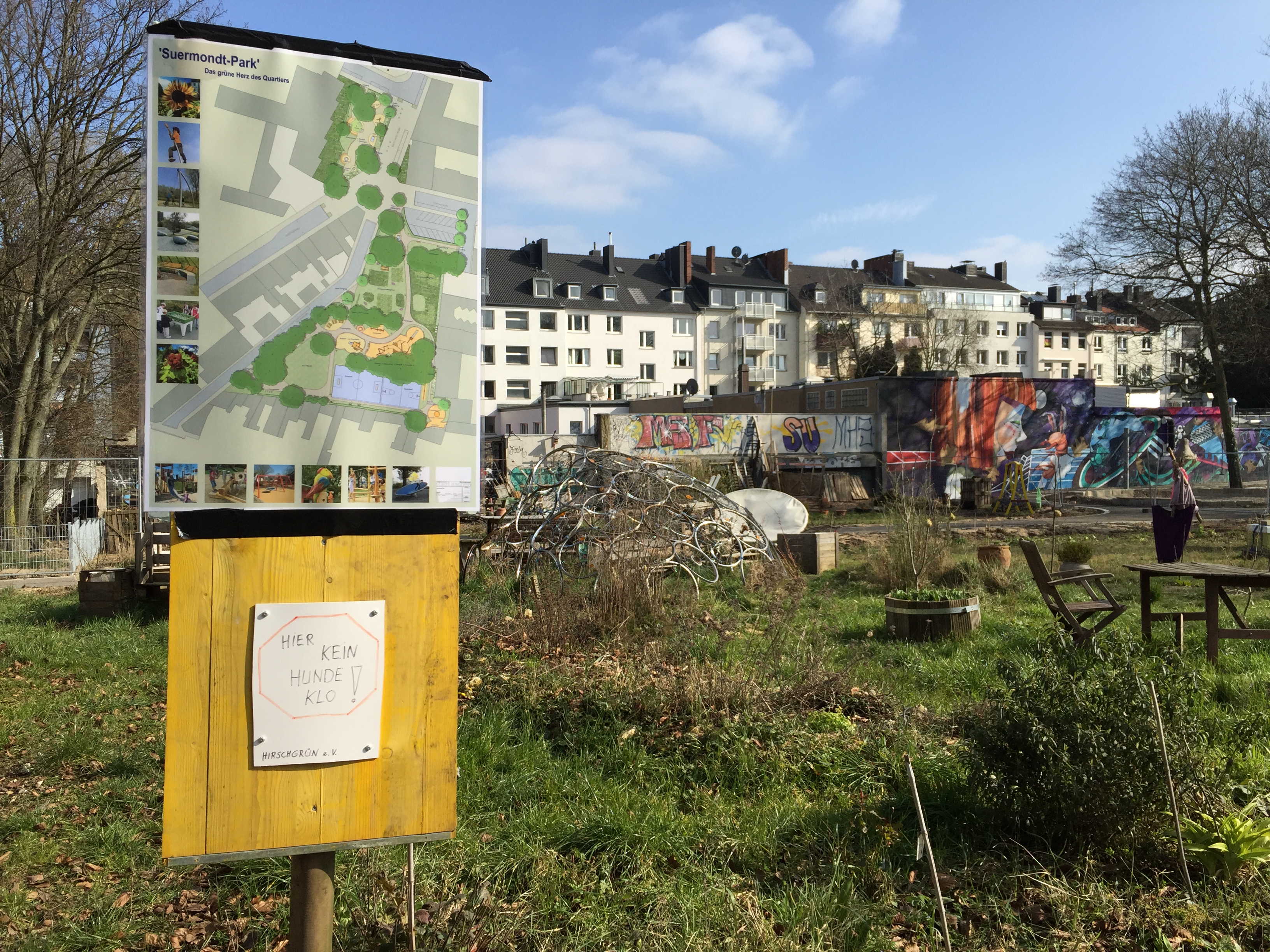 HirschGrün – das ist der Name eines Gartens, den einige Dutzend Aachenerinnen und Aachener in der Richardstraße betreiben. Es ist ein Urban-Gardening-Projekt. HirschGrün war bisher auch Bestandteil des neuen Suermondt-Parks in der Nähe vom Suermondt-Ludwig-Museum, einer Grünfläche mit einem coolen Spielplatz.