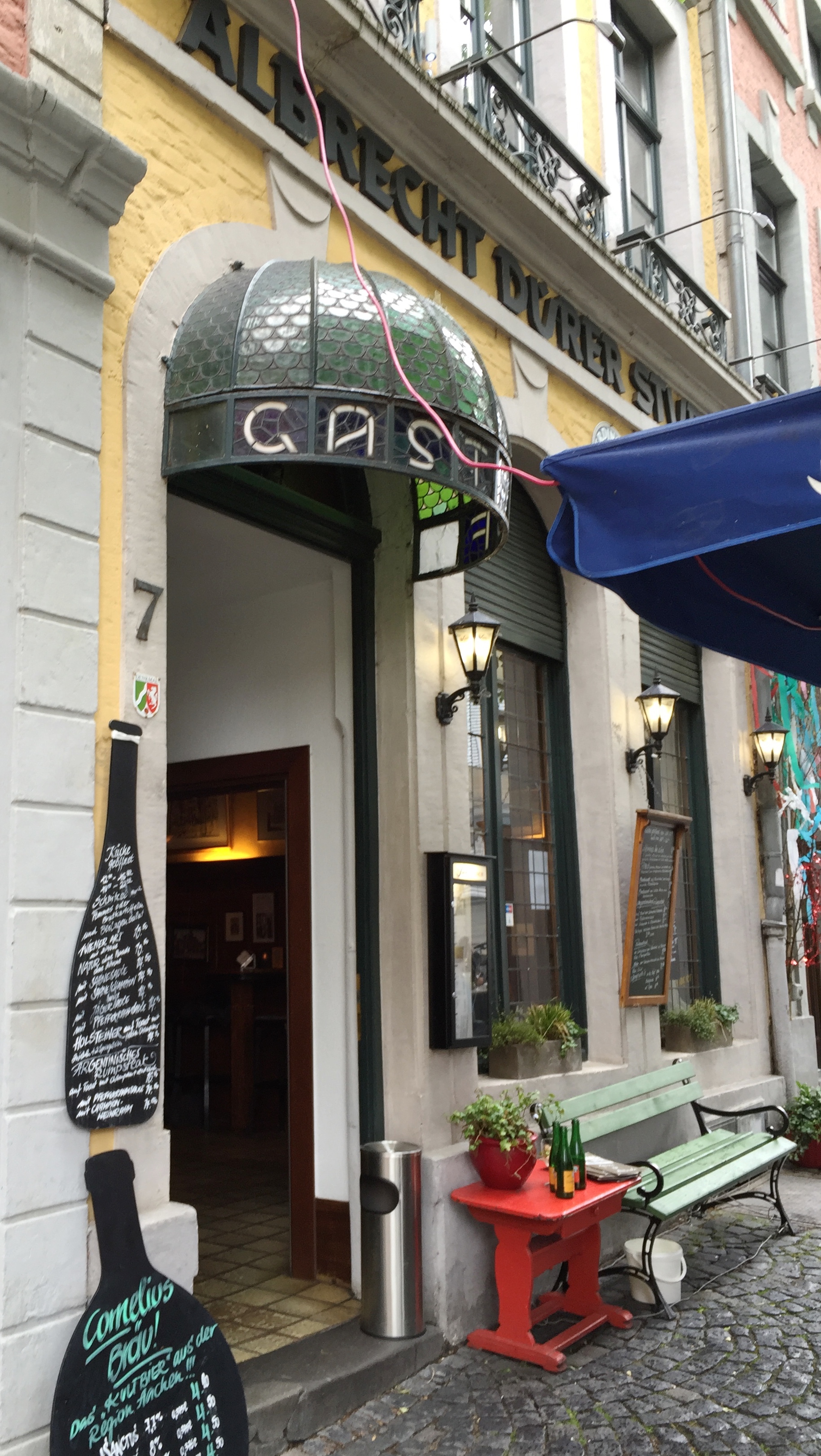 Man kann es drehen und wenden wie man will, aber in Aachen existiert eine gewisse Liebe zum Historischen. Traditionen in ihren verschiedenen Manifestationen sieht man ungern untergehen. 500 Jahre soll die Gaststätte schon alt sein, leider sieht sie auch so aus. Albrecht Dürer soll dort 1520 eingekehrt sein, das hat er zumindest damals in seinem Tagebuch notiert. Daher der Name. Sonderbar, dass das Gebäude nicht unter Denkmalschutz steht.