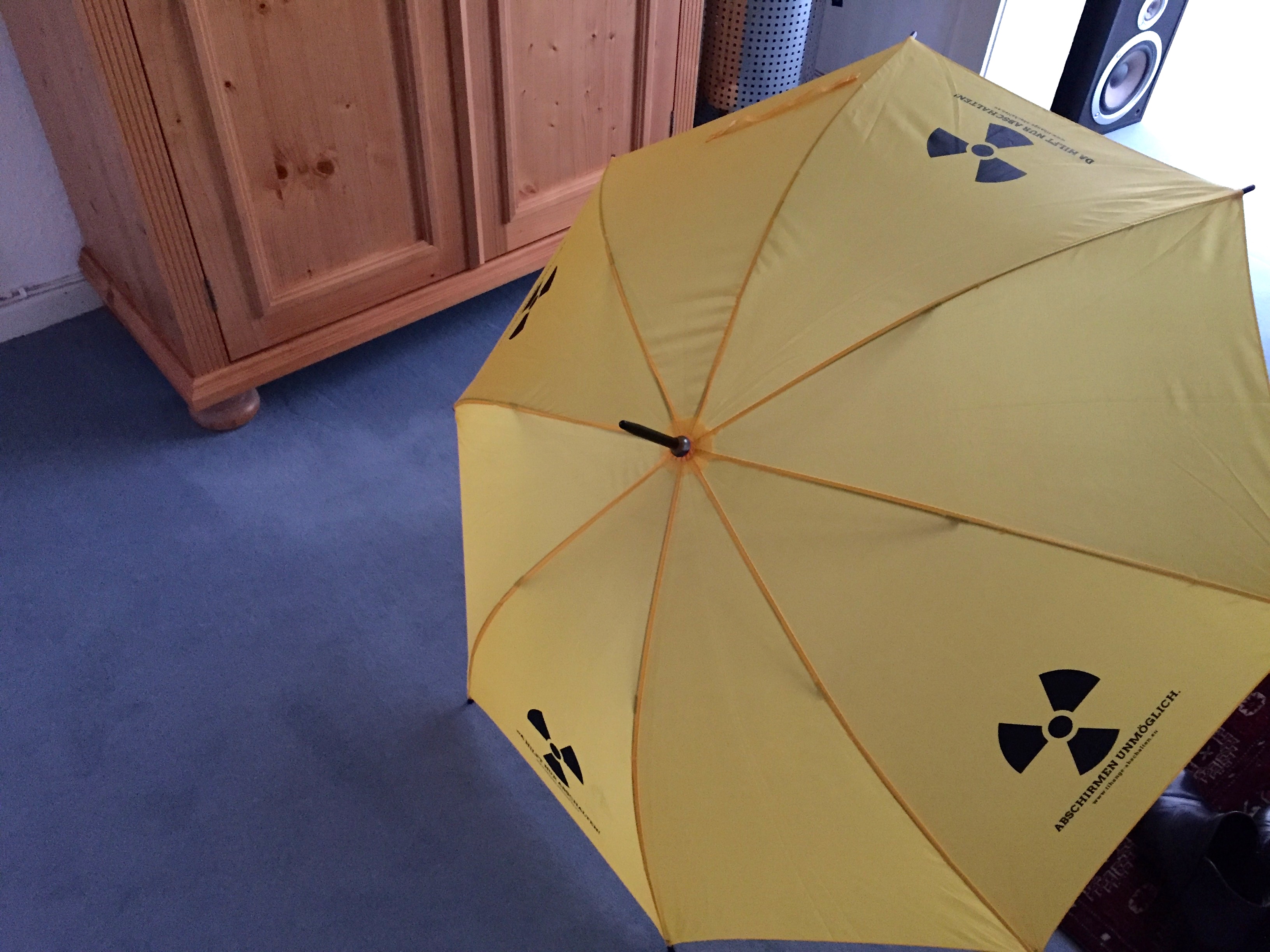 Die Grünen in Aachen organisieren eine Protestveranstaltung, die Geschäftswelt in Aachen verkauft dazu die passenden Anti-Atom-Schirme (s. Flyer z. B. in der Kleinmarschierstraße).