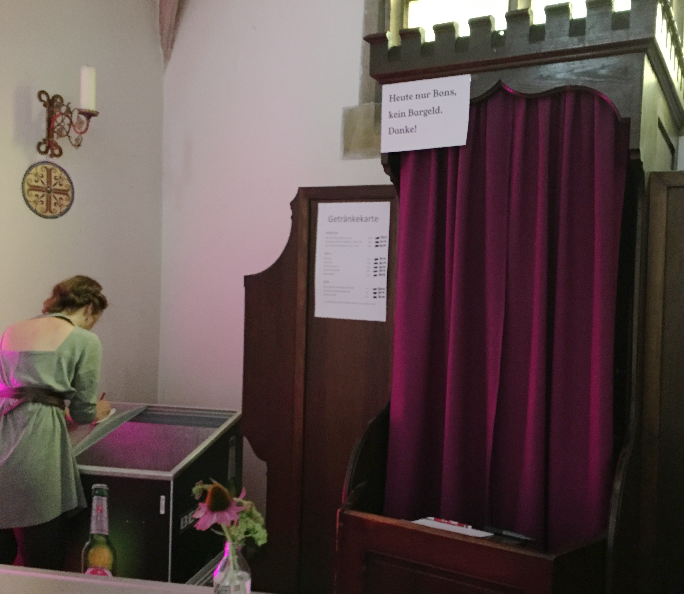 Einige, für eine katholische Kirche typische Einrichtungsgegenstände durften bleiben. Beispielsweise ein Beichtstuhl und ein Tabernakel, aber wer weiß heute noch, was ein Tabernakel ist?