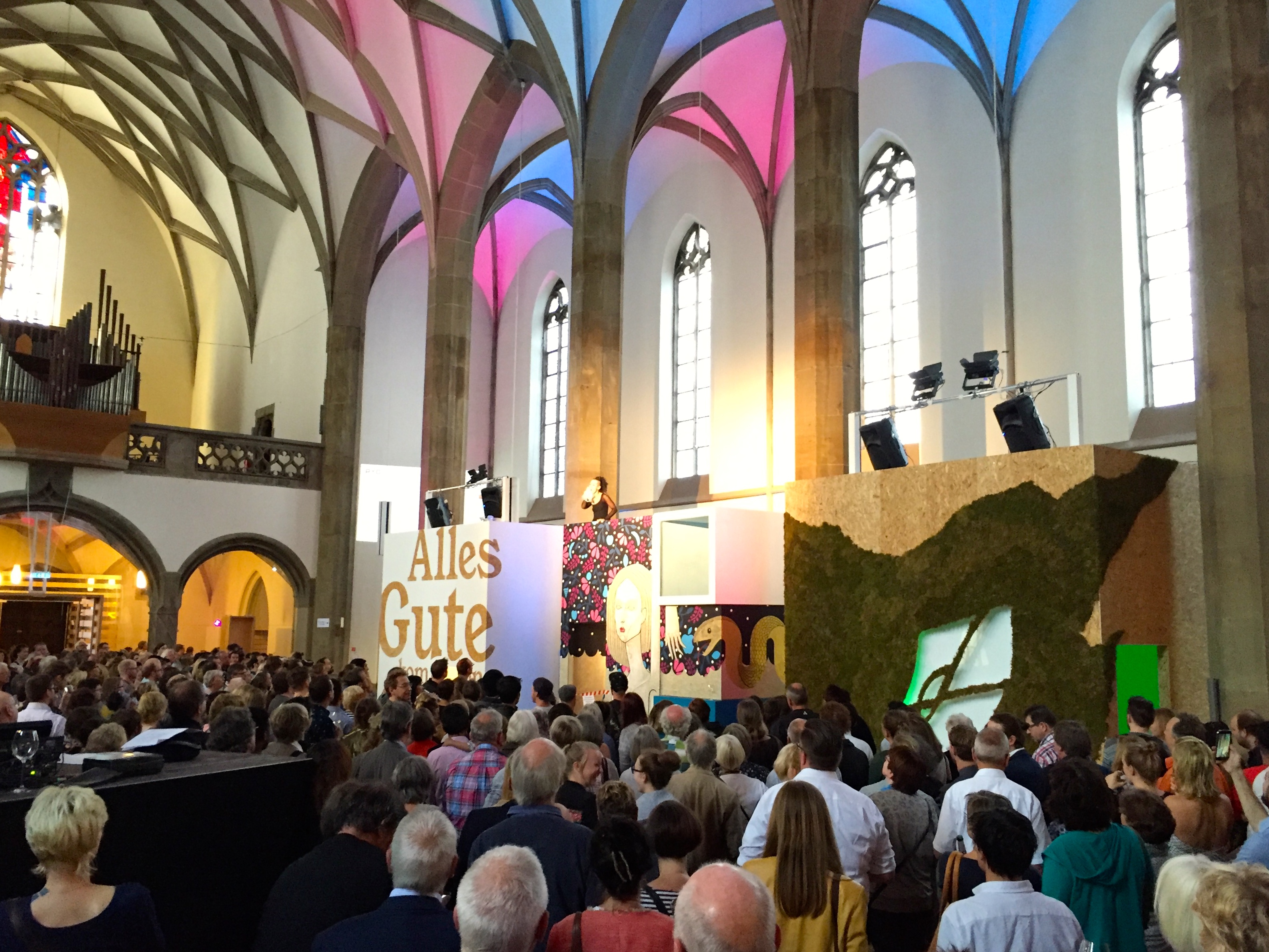 Gearbeitet haben natürlich nicht nur die drei Mädels (Patricia Graf, ihre Schwester Julia Graf und Anke Didier), sondern auch Handwerker, Langzeitarbeitslose, Flüchtlinge und viele mehr. Als die Macher sich auf der Bühne vorstellten, waren das fast 50 Personen. Das Land NRW hat Geld locker gemacht, andere auch, Infos findet ihr hier: http://www.hotel-total.com