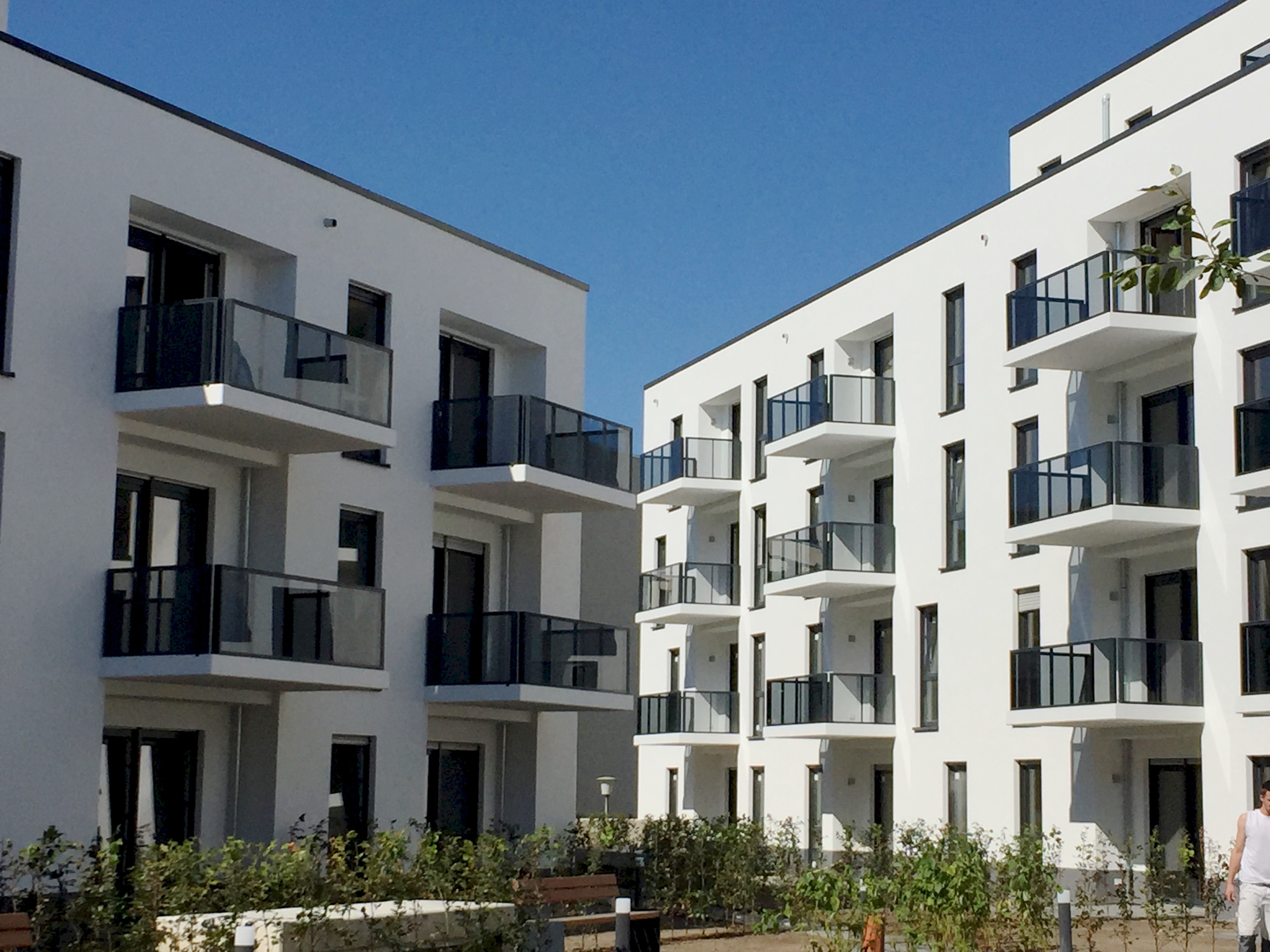 Blick ins Innere der Wohnanlage. Um das Grün kümmert sich eigens ein Gärtner. Ist das nun schön oder doch nicht?