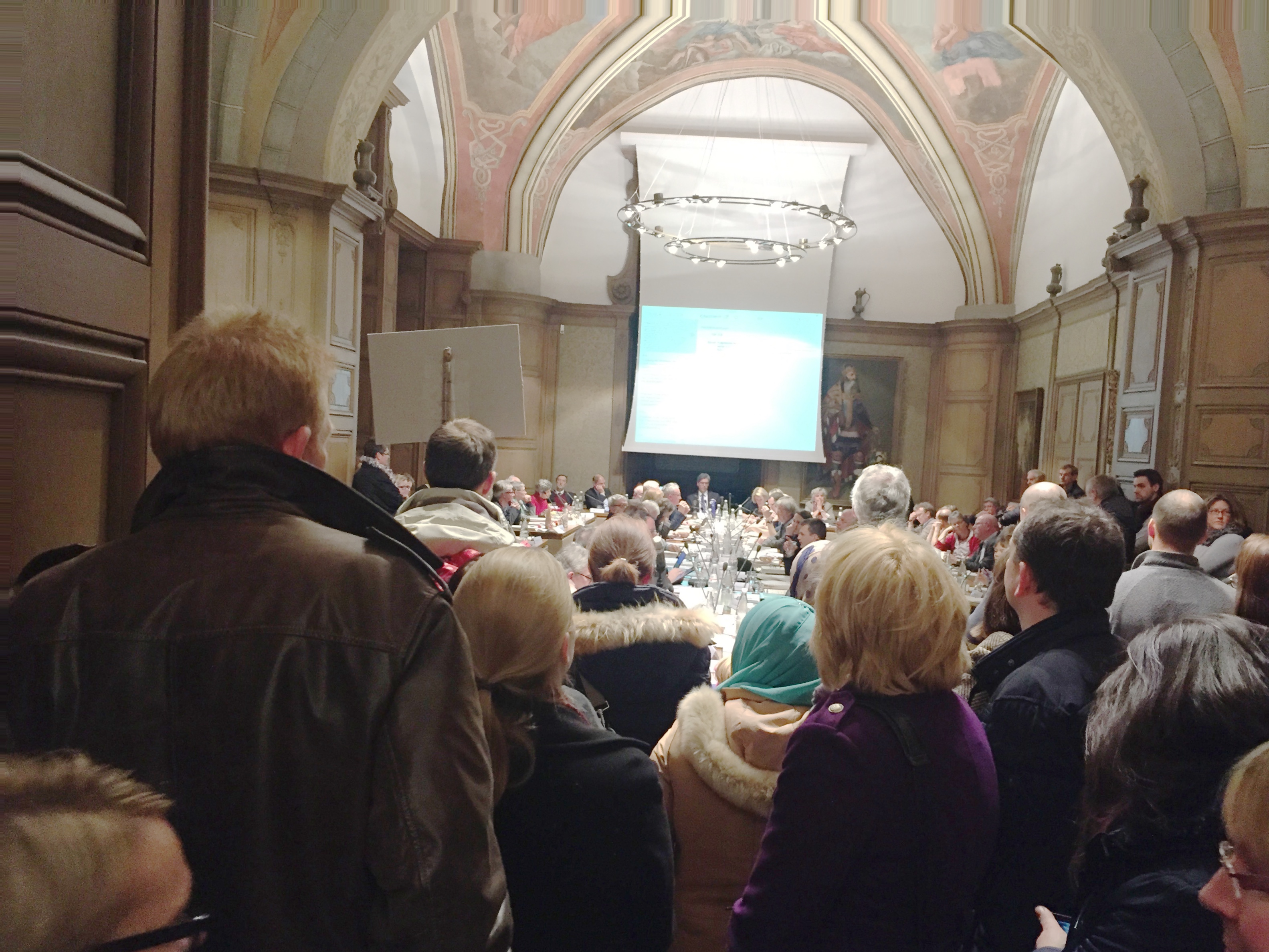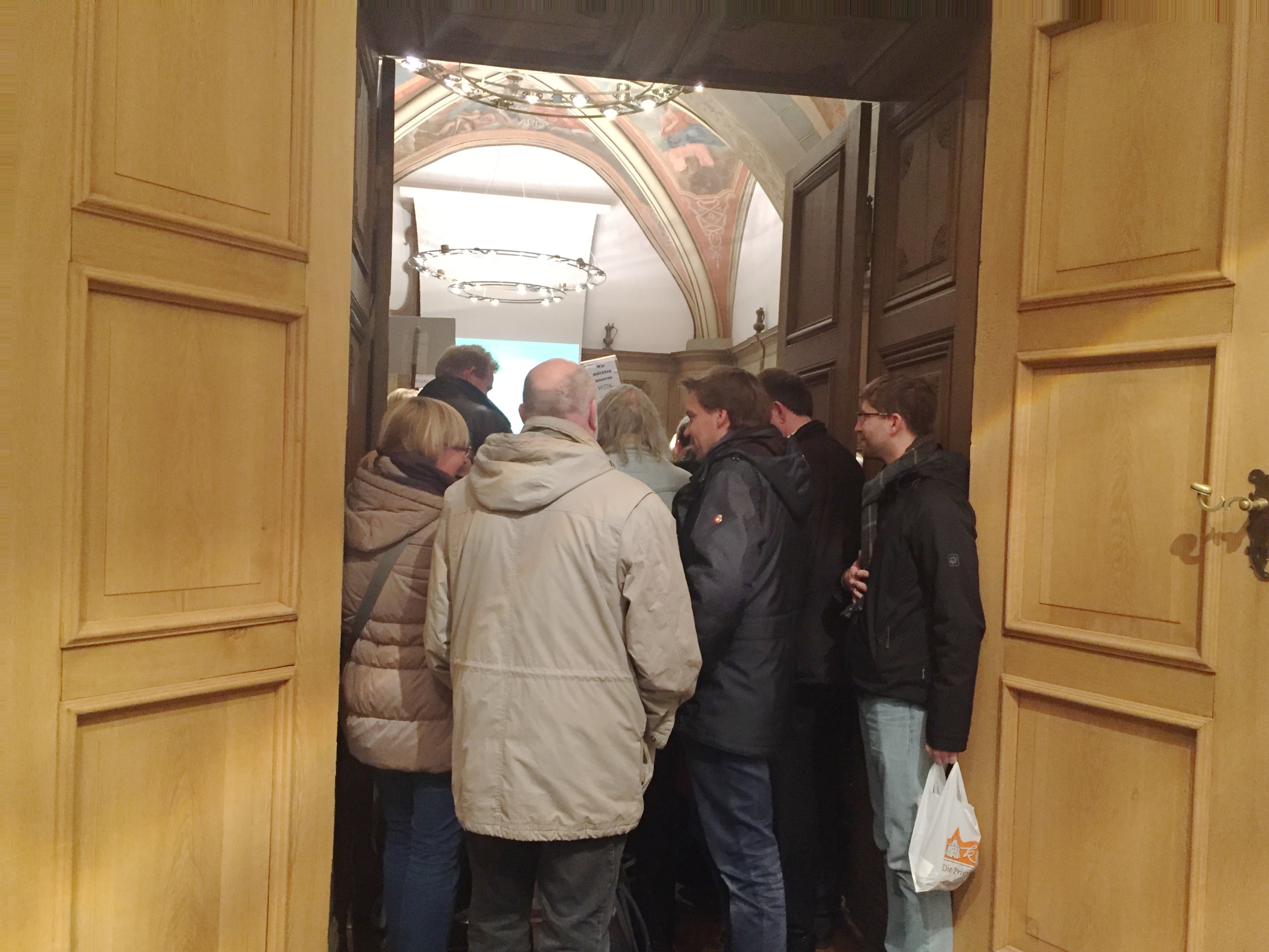 Drängeln war erforderlich, um einen Blick in den hoffnungslos überfüllten Ratssaal werfen zu können.