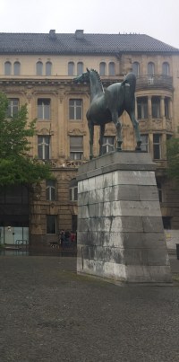 Der „lachende Gaul“ vor dem Stadttheater von Gerhard Marcks, in dessen Rücken sich Vorgänge abspielen, über die man sich wundern muss.