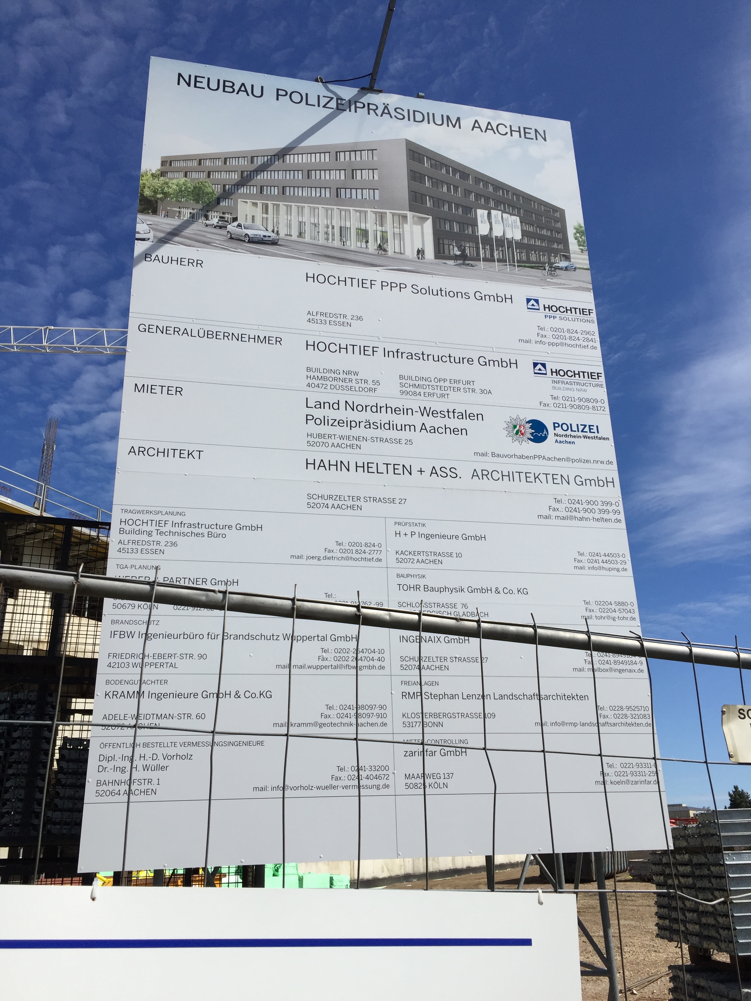 Der Neubau des Polizeipräsidiums an der Trierer Straße kommt zügig voran. Bauherr: Hochtief PPP Solutions GmbH, Mieter: das Land NRW. Als Architekten zeichnet die HahnHelten und ASS Architekten GmbH aus Aachen verantwortlich.