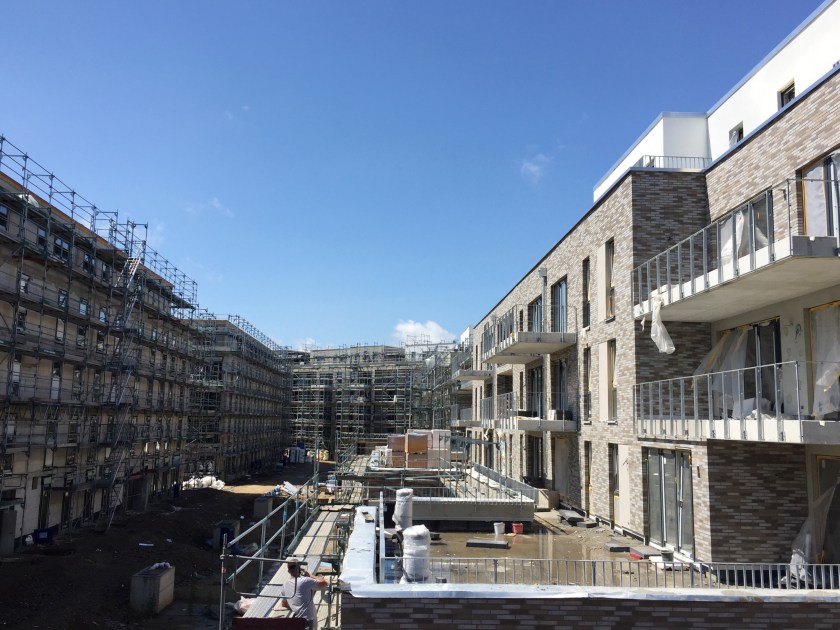 Und von außen auf den Teil, vor dem (links hoch) noch eine neue Straße gebaut wird: