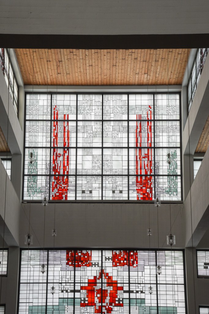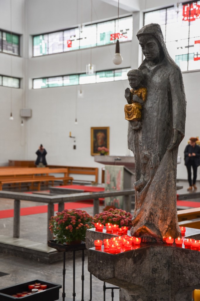 Die Fotos zeigen das Innere der Kirche St. Bonifatius in der Mataréstraße in Aachen. Architekt: Professor Rudolf Schwarz, Fenster: Maria Katzgrau.
