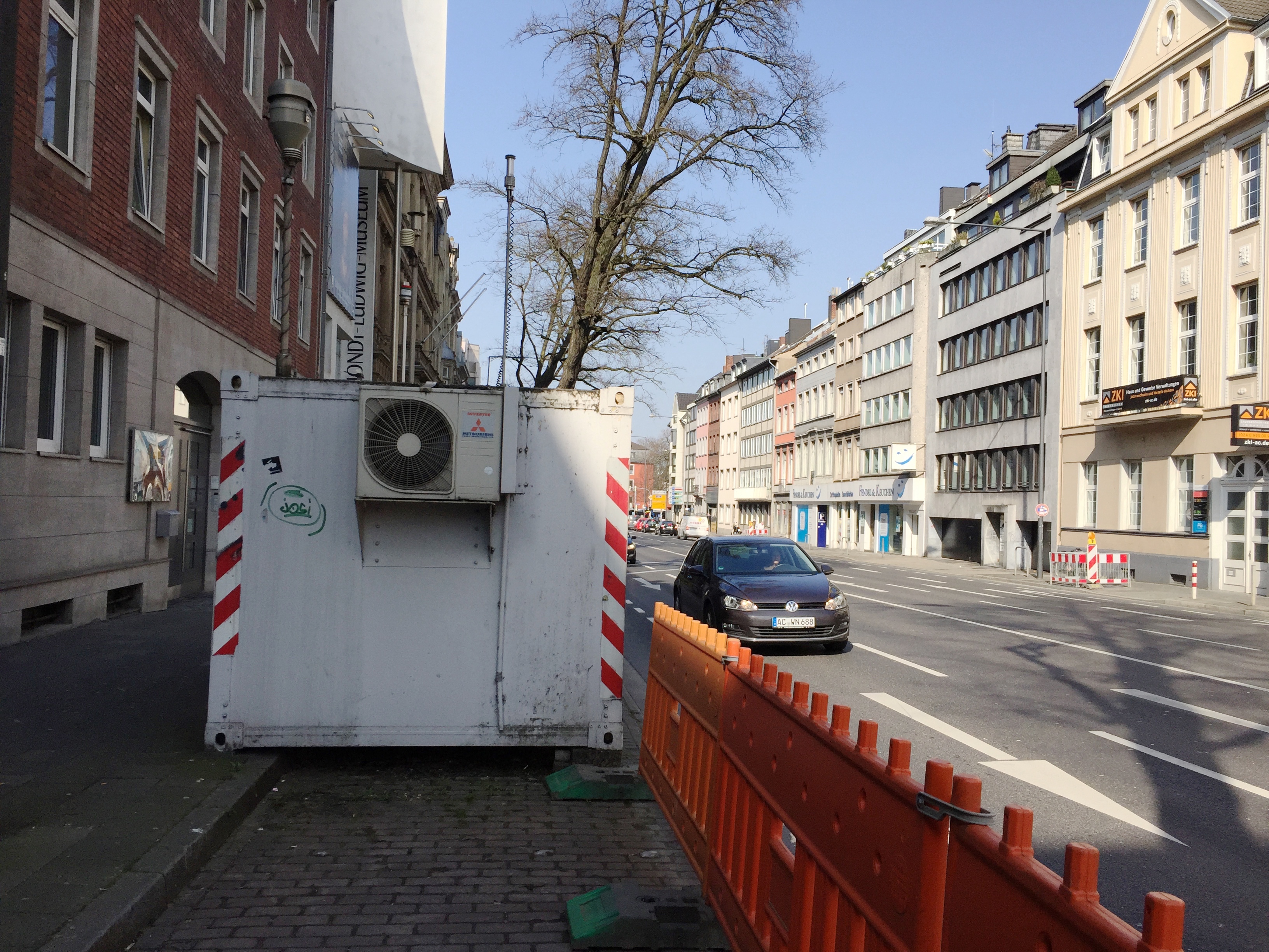Mal eine Frage: Braucht man eigentlich – um die von Pkw produzierten Umweltgifte und -gase (NOX) zu messen – eine so umfangreiche Apparatur, dass die nur in so einen Kasten (Foto) passt, wie hier zuletzt gesehen in der Wilhelmstraße? Oder können die Messinstrumente auch wesentlich kleiner sein, quasi handlich und deshalb variabel einsetzbar?