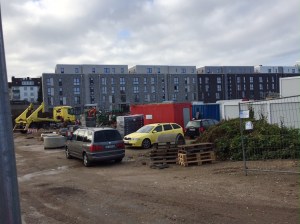 Neben der neuen Wohnanlage „Guter Freund“ (ganz hinten im Bild) kann eine weitere Wohnanlage entstehen. Am Eisenbahnweg ist Platz satt, und der Investor ist nicht abgeneigt.