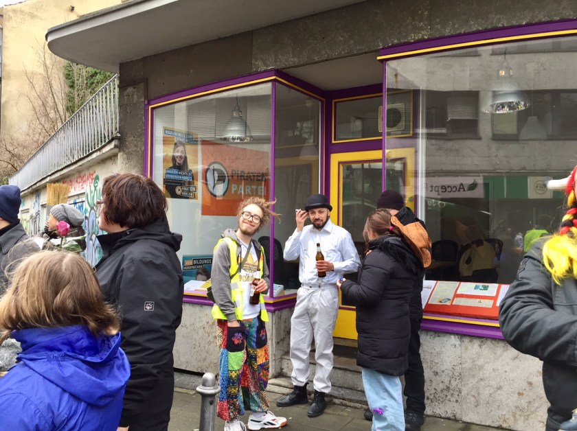 Piraten in Aachen feiern Karneval vor und in ihrem Büro in der Lothringerstraße. Mit Ironie.