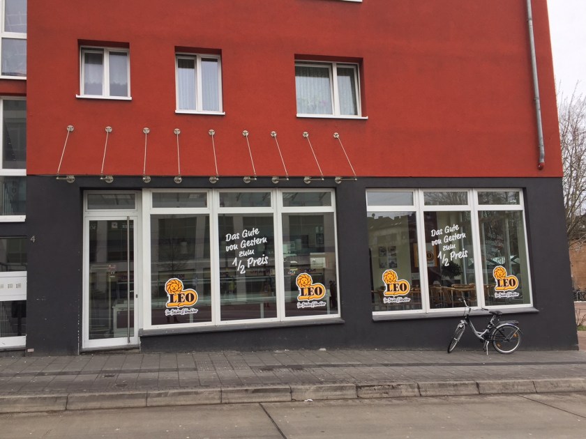 Speis und Trank. „Das Gute von Gestern zum 1/2 Preis“. Das bietet im unteren Teil der Trierer Straße tatsächlich die Bäckerei LEO an. Und ob ihr es glaubt oder nicht: Die Brote und Teilchen schmecken prima, sogar besser als die ganzen frischen Sachen, die im Bauch noch aufquellen, eben weil sie so frisch sind. Außerdem ist es in dieser Bäckerei völlig egal, welche Nationalität der Kunde/die Kundin hat. Mir ist persönlich wichtig, dass ich dazu beitrage, dass nicht so viele Lebensmittel weggeworfen werden.