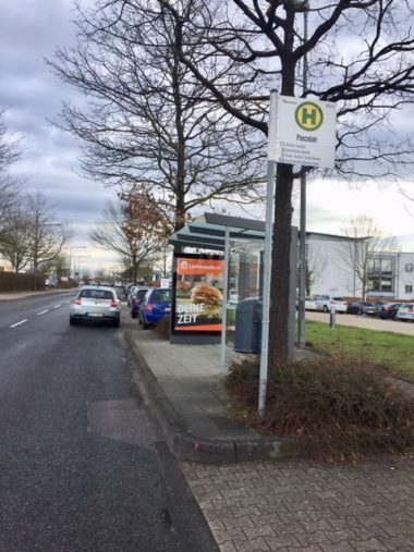 Bushaltestelle in der Pascalstraße im Gewerbegebiet.
