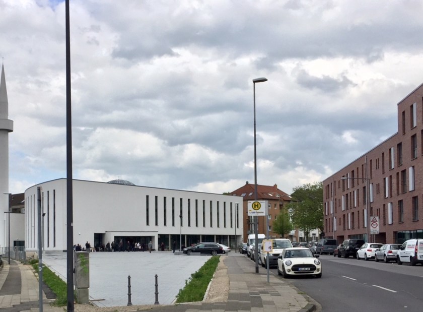 Im Ostviertel von Aachen: die neue Moschee mit ihrer Kuppel. Sie ist innen prächtig ausgemalt. Mehrere hundert Menschen haben im Gebetsraum Platz.