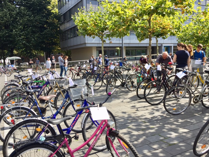 Auf der Suche nach einem geklauten Fahrrad sind wir Samstag zum Fahrradmarkt am Templergraben gefahren. Der findet dort einmal im Monat statt und hat ein vielfältiges Angebot. Rund 30 gebrauchte Räder wurden gestern angeboten, von Privatleuten.