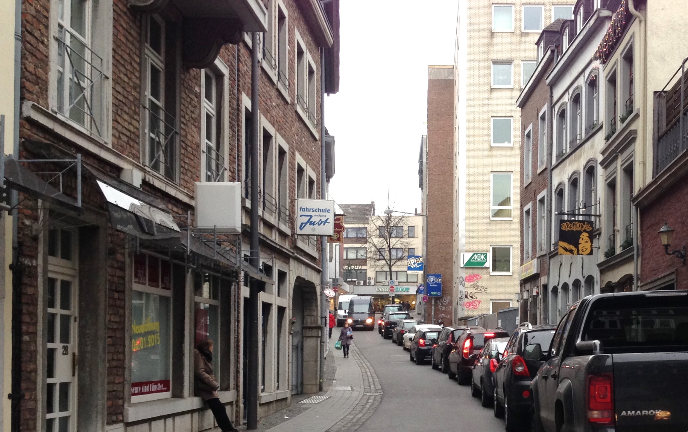 Nicht auszuschließen ist, dass dieser Markt-nahe Bereich mittelfristig ganz für den Pkw-Verkehr gesperrt wird. Dann wäre das Parkhaus vollkommen vergebens saniert worden. Als Radfahrerin fällt mir dazu nur ein Bild ein: Aachen, vorne und hinten platt.