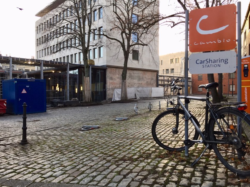 Aber man soll die Hoffnung nie aufgeben. Auf dem Klosterplatz, an dem sich die niemals fertig gebaute Verwaltung des Bistums befindet, also in zentraler Innenstadtlage, da hätten außer den Fahrzeugen von Behinderten, den Cambio-Autos (CarSharing), drei bis vier alten Bäumen und einer Ladestation für E-Autos bestimmt auch noch 200 Fahrräder Platz. Dass es, wie die Grünen fordern, „hochwertige Abstellmöglichkeiten“ sein müssen, denke ich nicht. Planung und Bau würden dann wieder Jaaaaahre dauern. Radfahrer brauchen aber sofort Abstellmöglichkeiten.