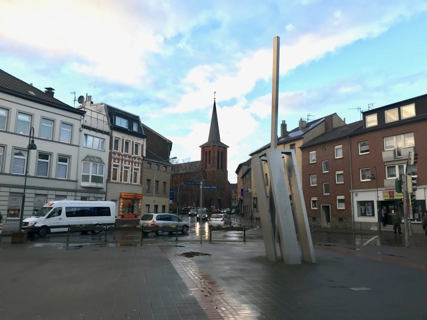 Einmal in Haaren unterwegs, habe ich mir die Plastik des Aachener Künstlers Joachim Bandau angesehen und fotografiert. Eine weitere Bandau-Arbeit befindet sich in der Aachener Synagoge.