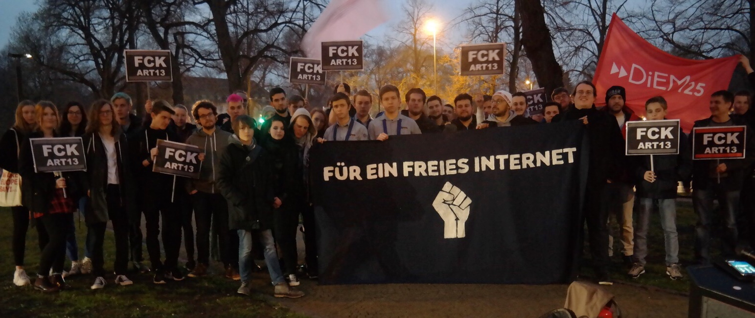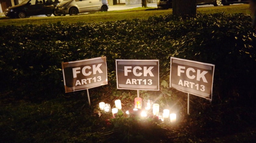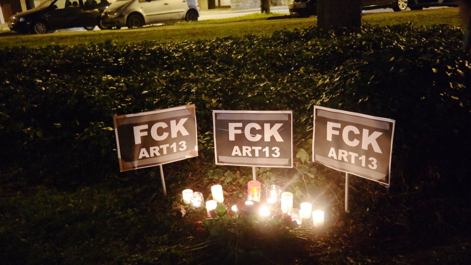 Freunde eines freien Internet versammelten sich nach der Abstimmung vor dem Büro der örtlichen CDU-Europa-Abgeordneten.