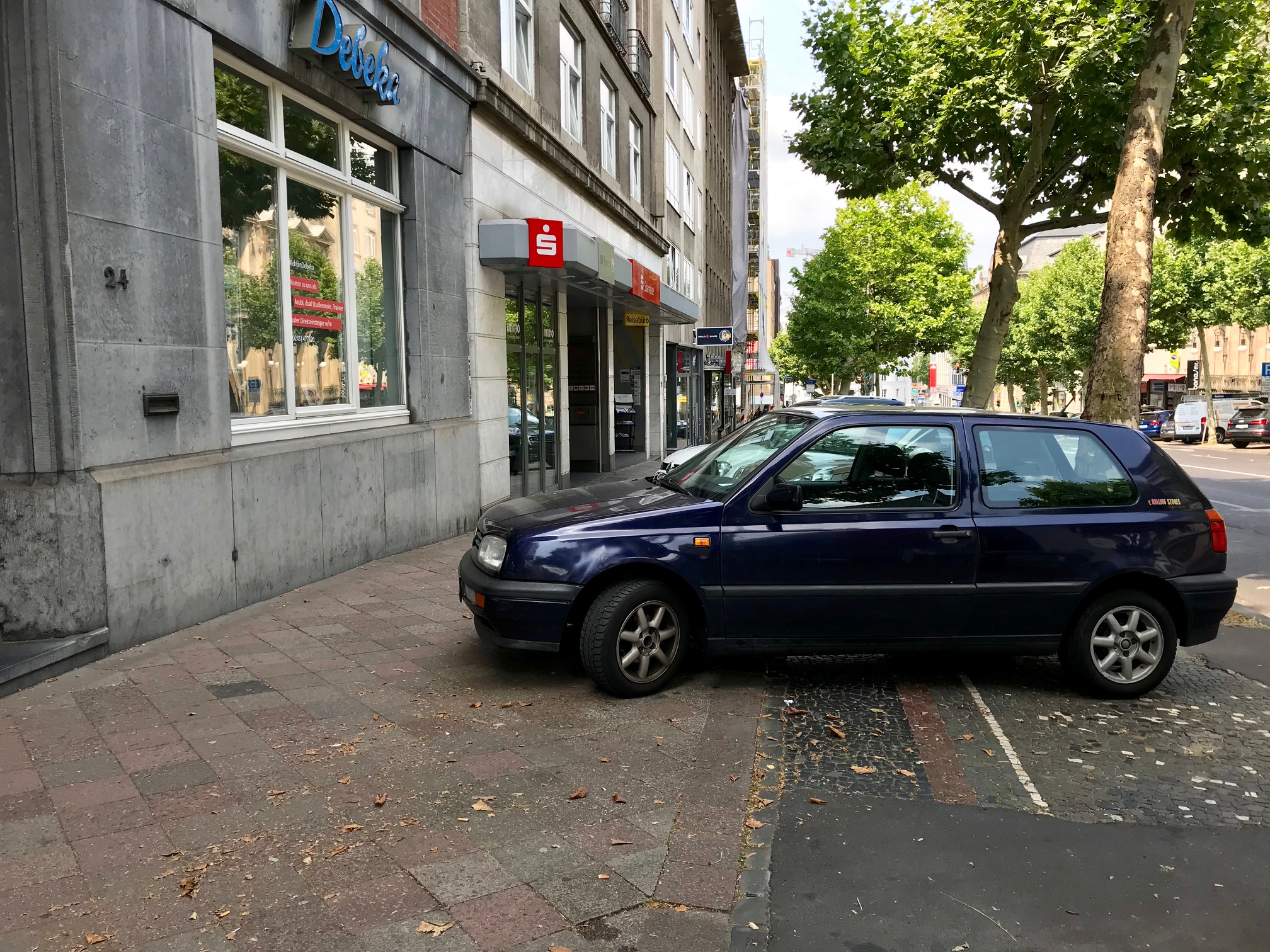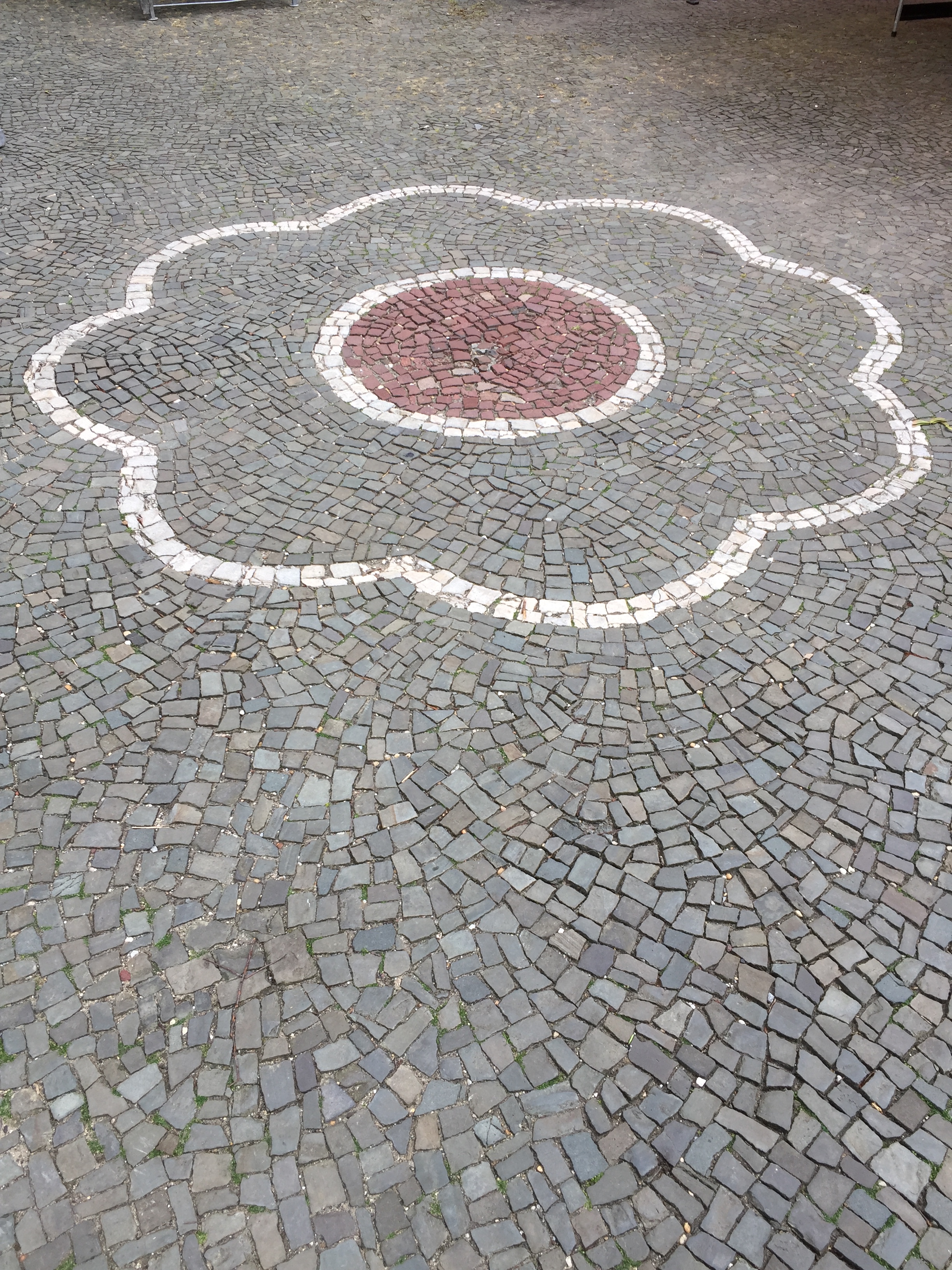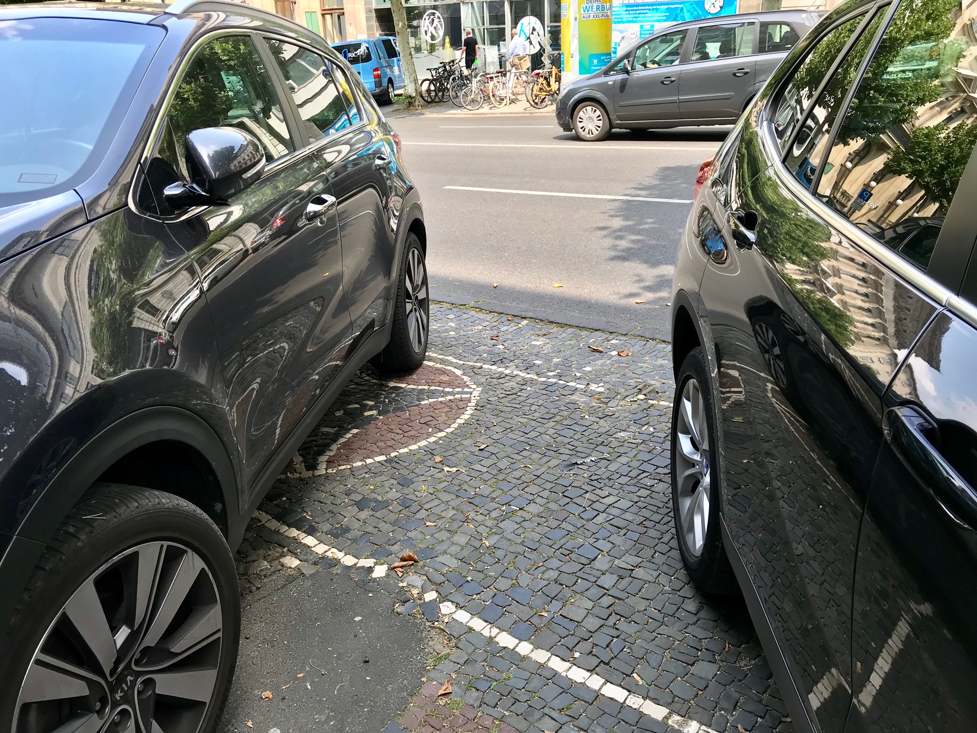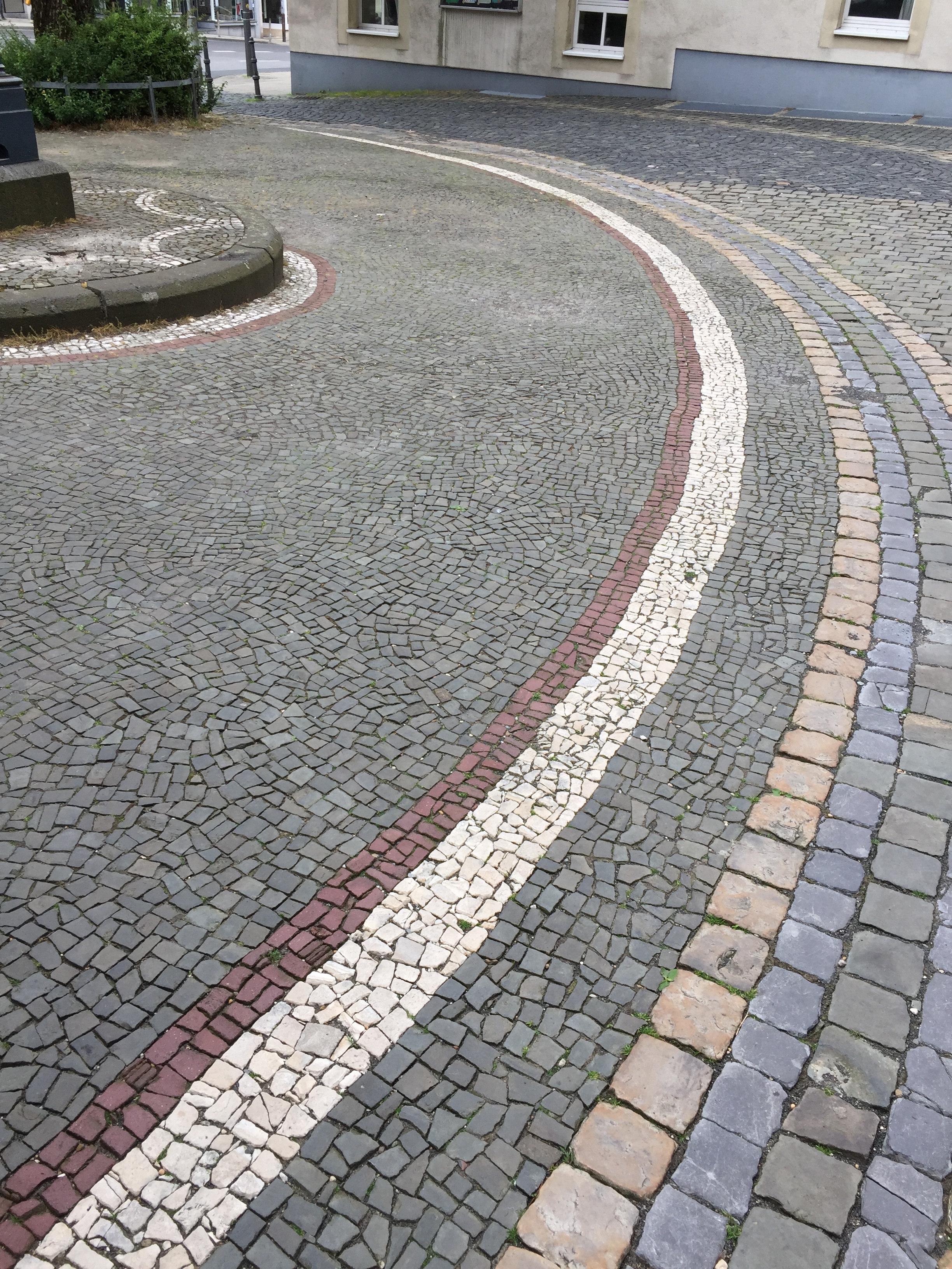 Auf der Theaterstraße in Aachen befindet sich (auf beiden Seiten) etwas, das ein sogenanntes Bodendenkmal sein soll. Es ist im Aachener Fall ein historisches Muster in verschiedenen Variationen. Als Bodendenkmal wäre das Muster besonders schützens- und erhaltenswert. Was aber mit dem kunstvollen Pflaster in Aachen geschieht, kann man auf den Fotos hier erkennen: Es wird zerstört, von parkenden Autos. Erstaunlich, dass sich in Aachen kaum jemand daran stört.