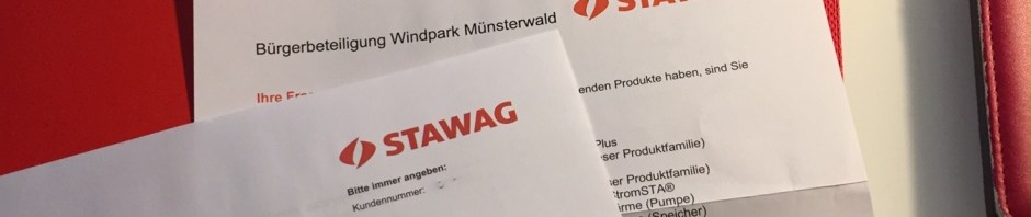 Wer den Strom für Handys und Rechner, Lampen, Kühlschrank, Spülmaschine, die Waschmaschine usw. von der Stawag bezieht, darf sich in Kürze mit bis zu 5000 Euro am Windpark Münsterwald beteiligen. „Über eine Laufzeit von 5 Jahren erhalten Sie dafür zwei Prozent Zinsen im Jahr“, teilt der Aachener Energieversorger mit, und das ist kein schlechter Deal.