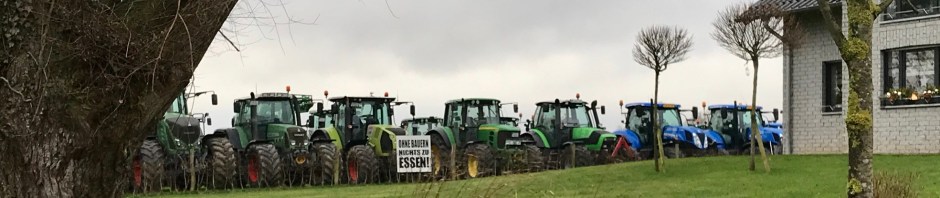 (Auf das Foto klicken, dann kann man lesen, was auf dem Plakat steht.) Die Veranstaltung dauerte nicht mal eine Stunde. Aachener Presse und belgisches Fernsehen waren vertreten. Rechtsradikale habe ich nicht gesehen. Aus dem Raum Heinsberg waren Traktoren gekommen, gelenkt von Landwirten, deren Tiere – obgleich nicht erkrankt – bereits getötet wurden.