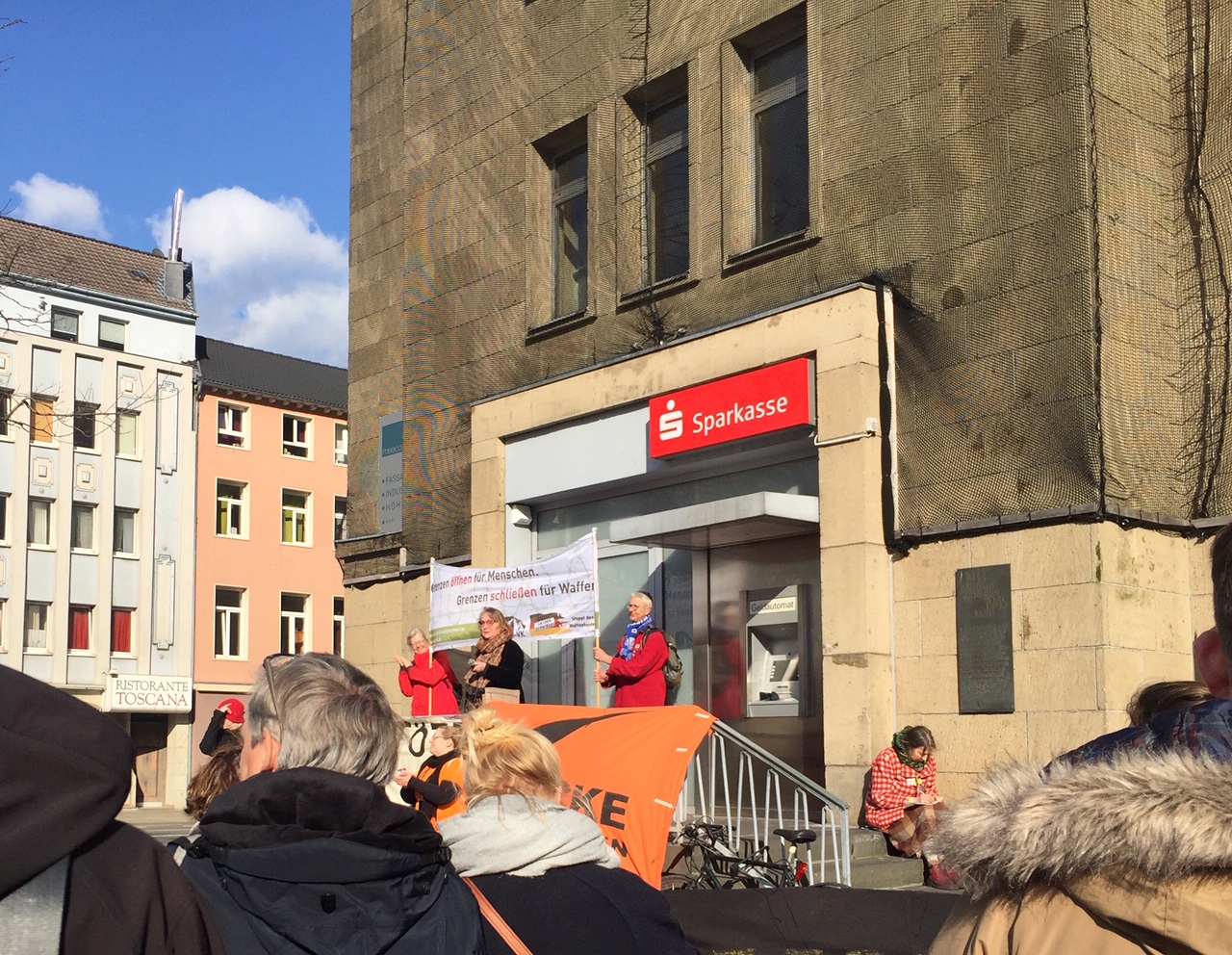 Aachen ist eine Grenzstadt und wird sich seine Offenheit, Hilfsbereitschaft und Internationalität bewahren. Das wünschte sich jedenfalls Aachens Bürgermeisterin Hilde Scheidt bei ihrer kurzen Ansprache auf dem Bahnhofsvorplatz. Auch andere Redner und Rednerinnen vor dem Elisenbrunnen und vor dem Hbf fanden passende Worte angesichts der Ereignisse, die quasi jeden Tag im TV zu besichtigen sind.