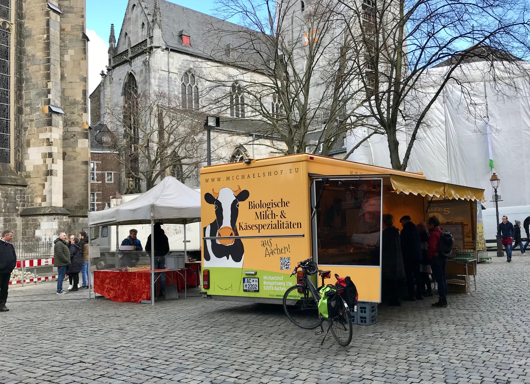 Den kleinen Biomarkt in Aachen auf dem Münsterplatz (jeden Samstag von 9 bis 14 Uhr) wird es bald nicht mehr geben. Ende April soll der Markt im Schatten des Domes zwar nicht abgeschafft werden. Er soll erweitert werden um Angebote, die nicht-biozertifiziert sind. Damit wäre er dann kein echter Biomarkt mehr, und die Angebotspalette wäre weniger stringent.