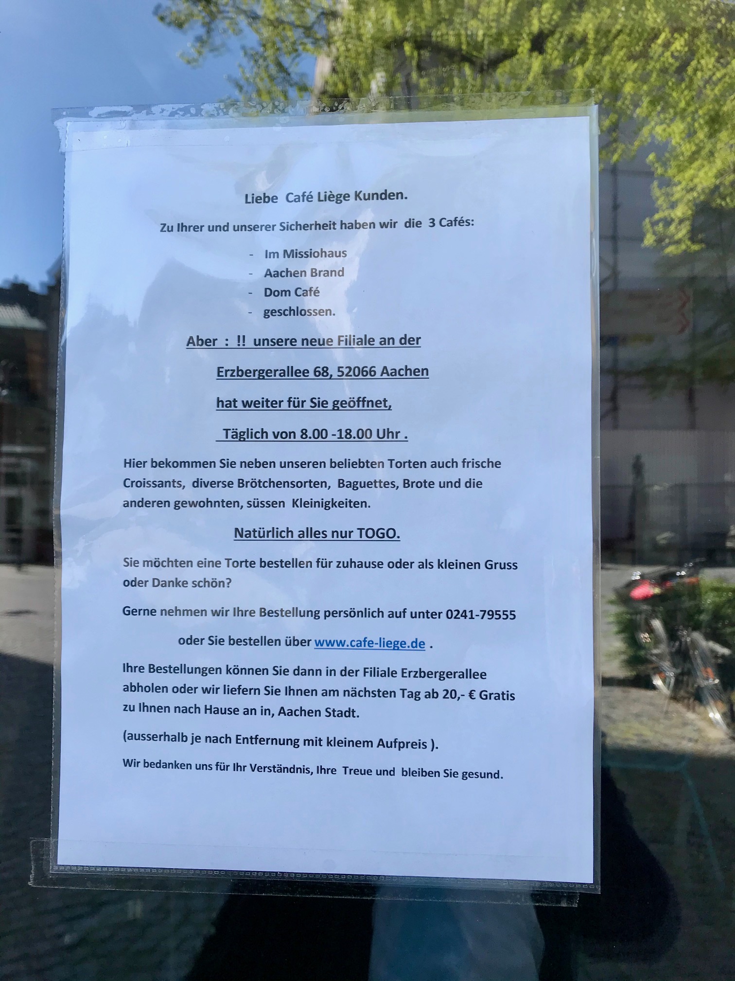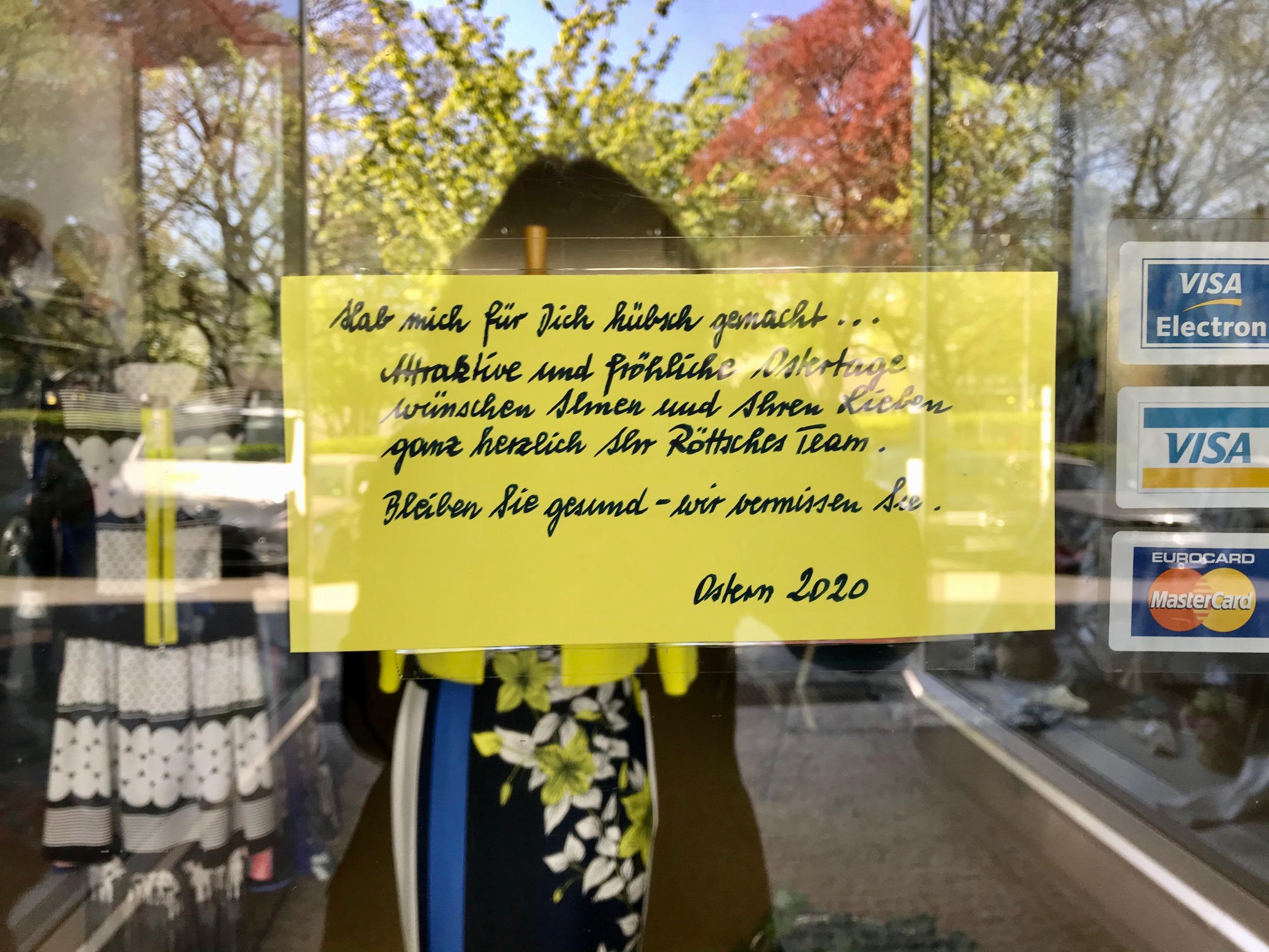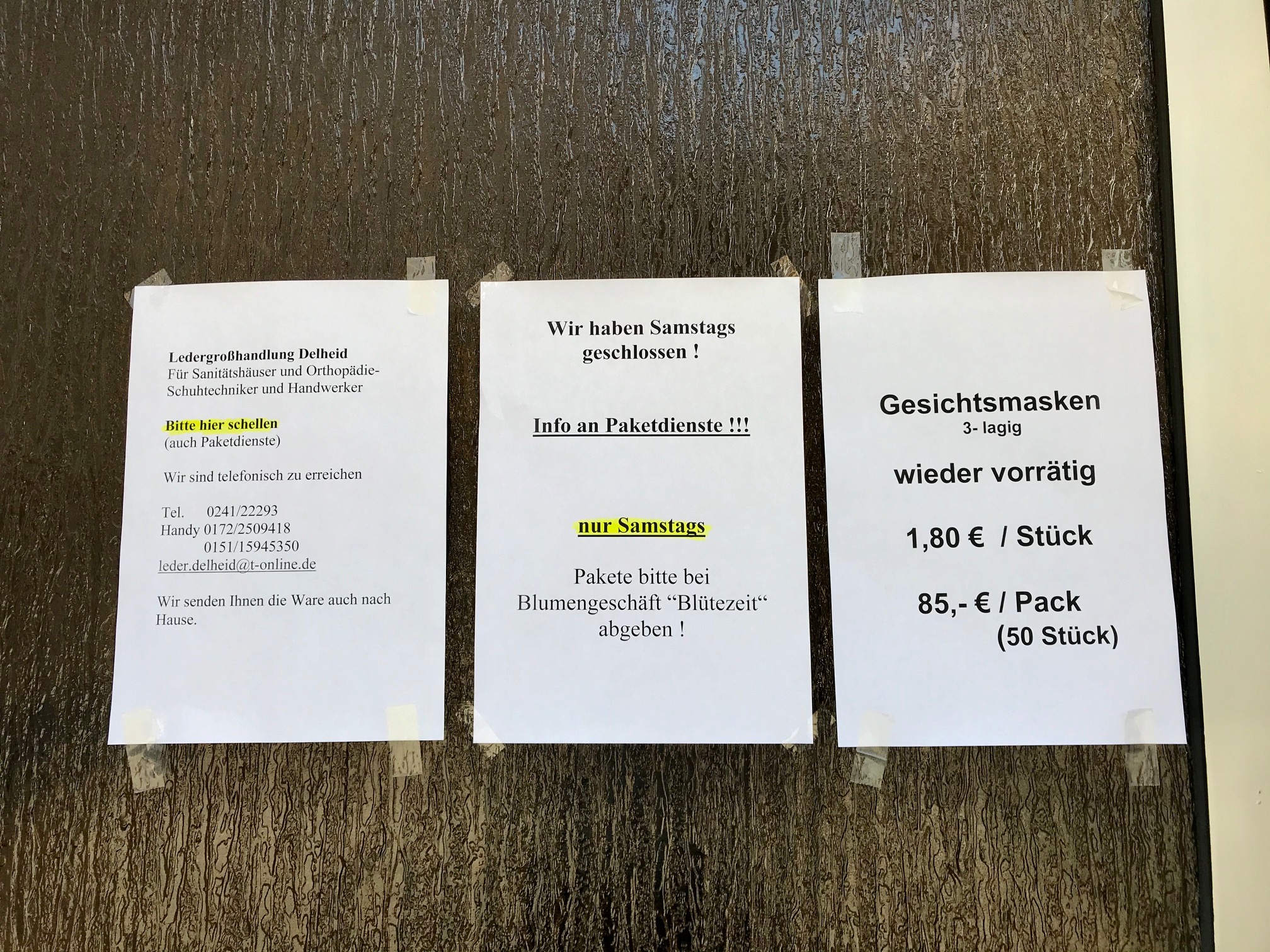 Auf edlem Papier.. . . wir vermissen Sie.Dieser Sturm wird vorüberziehen, ganz sicher, und er wird bereinigen und Raum schaffen für eine überfällige Neuausrichtung unseres Bewusstseins . . . Kurz und knapp.So kennt man Geschäftsleute: Niemals aufgeben!. . . und bleiben Sie wohlauf.50 Gesichtsmasken für 85 Euro.. . . schreibt uns einfach eine Mail.Erst wenn der letzte Laden verschwunden ist . . . . . . derzeit nicht geöffnet.Und immer wieder: Bleiben Sie gesundNatürlich alles nur TOGO. . . gezwungen, unser Geschäft vorerst zu schließen.Alle individuell, und einer sogar mit Herz.Am kommenden Montag geht’s weiter. Bis dahin: siehe unten.