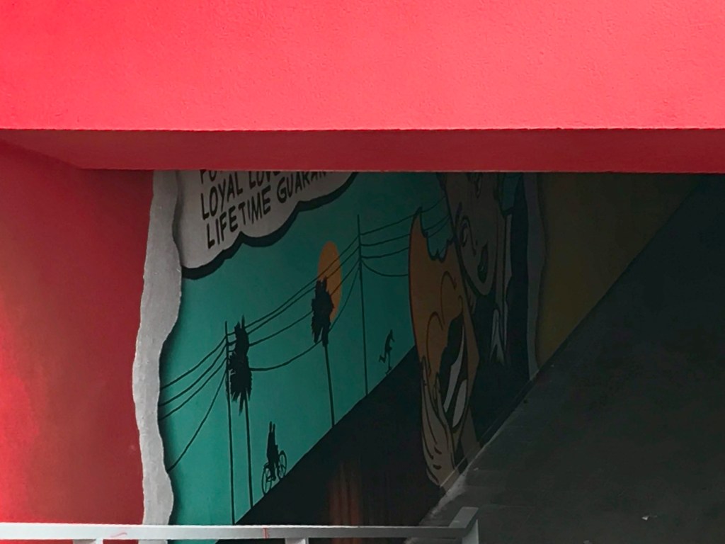 Rumfragen ergibt: Unter dem Pontwall und der Turmstraße ist der Künstler, der sich Senor Schnu nennt zugange. Er konnte – bei einer Art Wettbewerb – mit seinen Vorschlägen für die Gestaltung der Unterführung überzeugen und wurde vom Asta der RWTH ausgesucht.