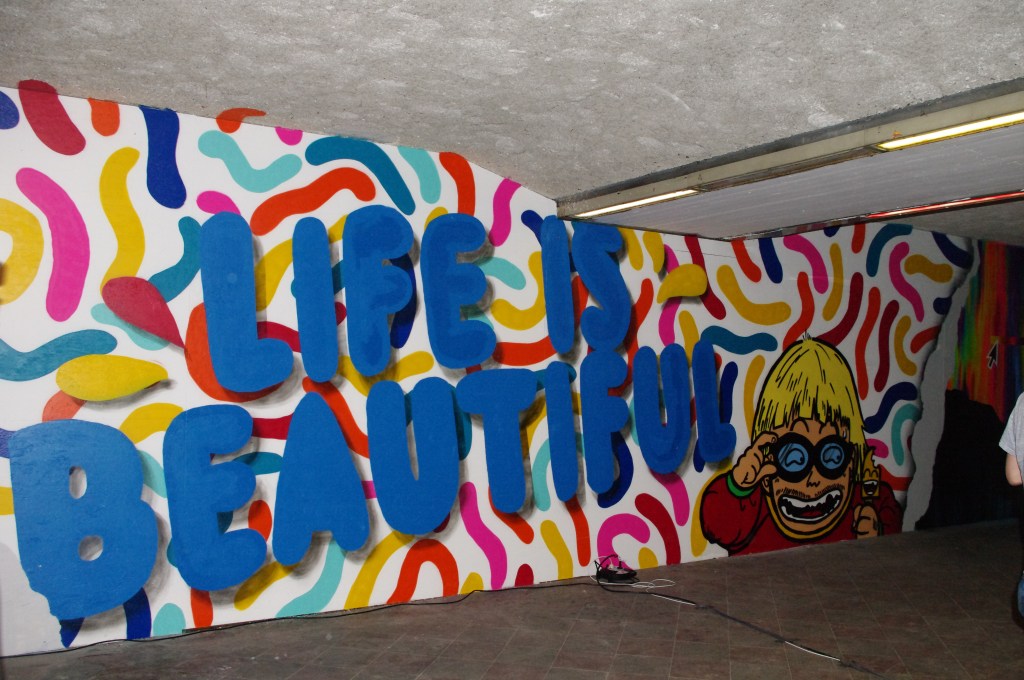 Im Kern greift Señor Schnus Konzept zwei in der Umfrage häufig genannten Begriffe auf: Diversität & Freundlichkeit. Durch entsprechende Farben, Elemente und Aussagen soll die Unterführung zukünftig eine angenehme und lebhafte Ausstrahlung haben. Unternehmer Axel Deubner hat das Ganze unterstützt, indem er der Stadt Bauzäune, Gerüste, Leitern, Kabeltrommeln und andere Baumaterialien kostenlos zur Verfügung gestellt hat. Insgesamt hat die Umgestaltung hat rund 50.000 Euro gekostet.
