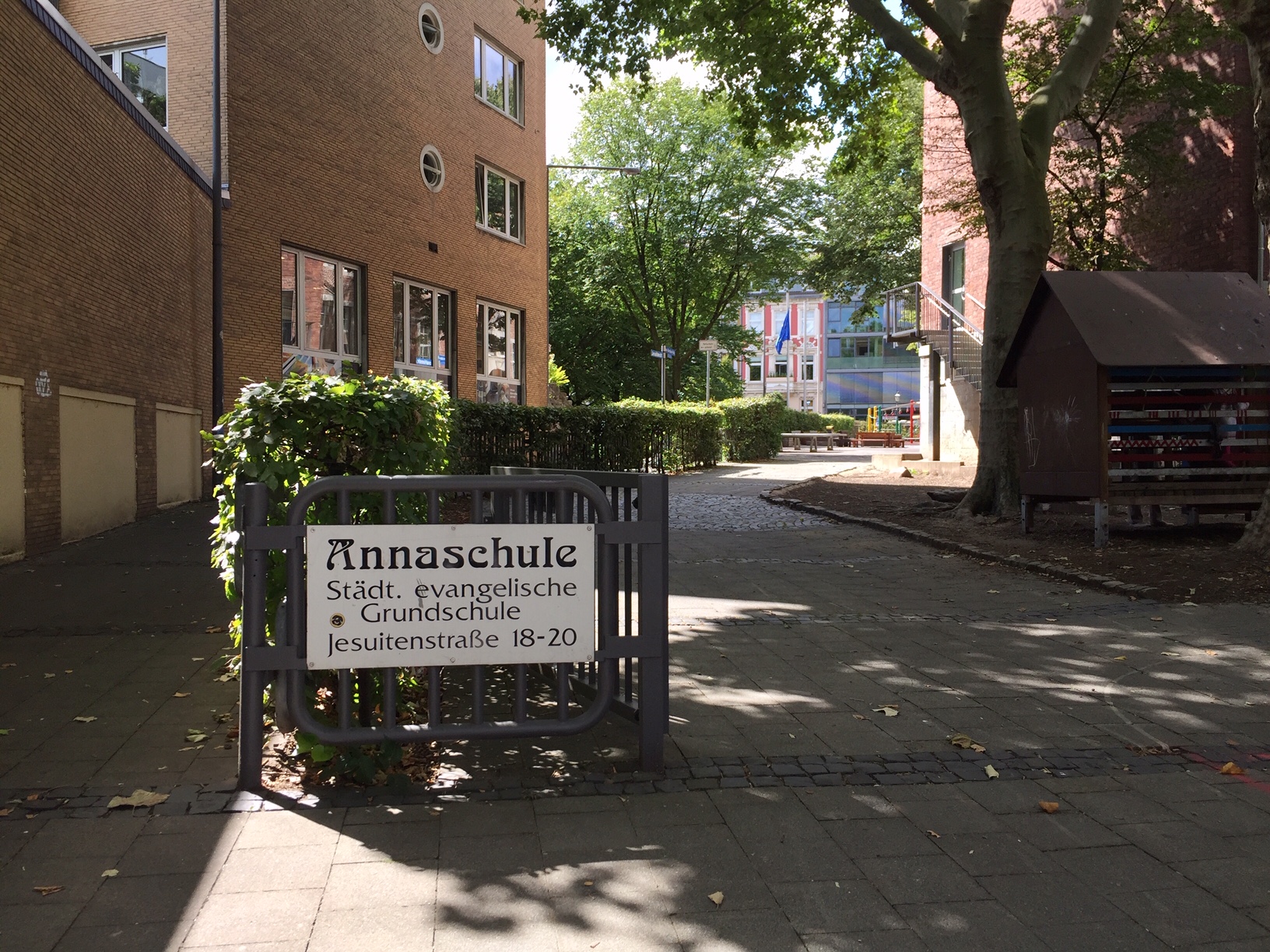 Aachens Grundschulen haben es, so mein Eindruck, generell schwer. Aachens einzige evangelische Grundschule – gleich neben Annastraße und Annakirche gelegen – verfügt vor Ort über ein kleines Extra-Gebäude für den Nachmittagsunterricht (OGS). Auf diese sogenannte kleine Annaschule hat es das Gymnasium abgesehen.