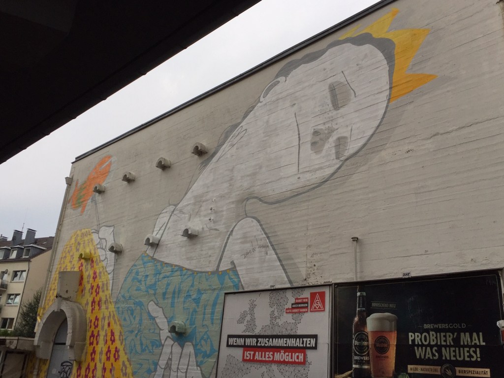 Gut, man kann ja froh sein, dass überhaupt etwas passiert und will nicht alles schlechtreden…aber inspirierend oder gar „schön“ ist solch ein Schockfarben-Machwerk nicht…man erinnert sich mit Wehmut an den Aachener Klaus Paier und seine Wandbilder…