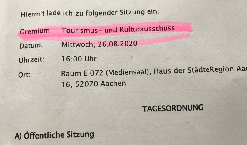 Am 27. Mai war das, als im Ausschuss unter Punkt 7 auf der Tagesordnung stand: „Touristische Entwicklung und Aktivitäten in der Corona Krise“.