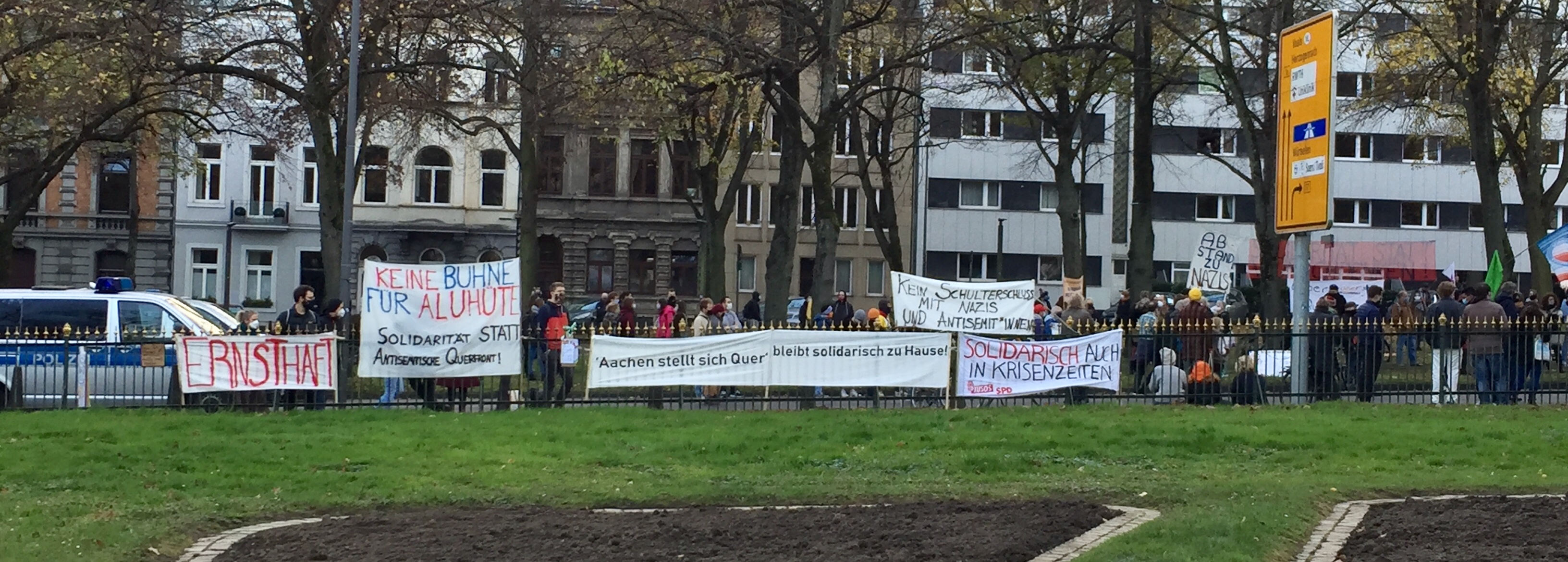 Aufmerksam beobachtet wurde die Veranstaltung von Aachens Polizeipräsident Dirk Weinspach und Oberbürgermeisterin Sibylle Keupen. Die Polizei zeigte auf der Monheimsallee bei der Gegendemonstration und bei den Querdenkern starke Präsenz.