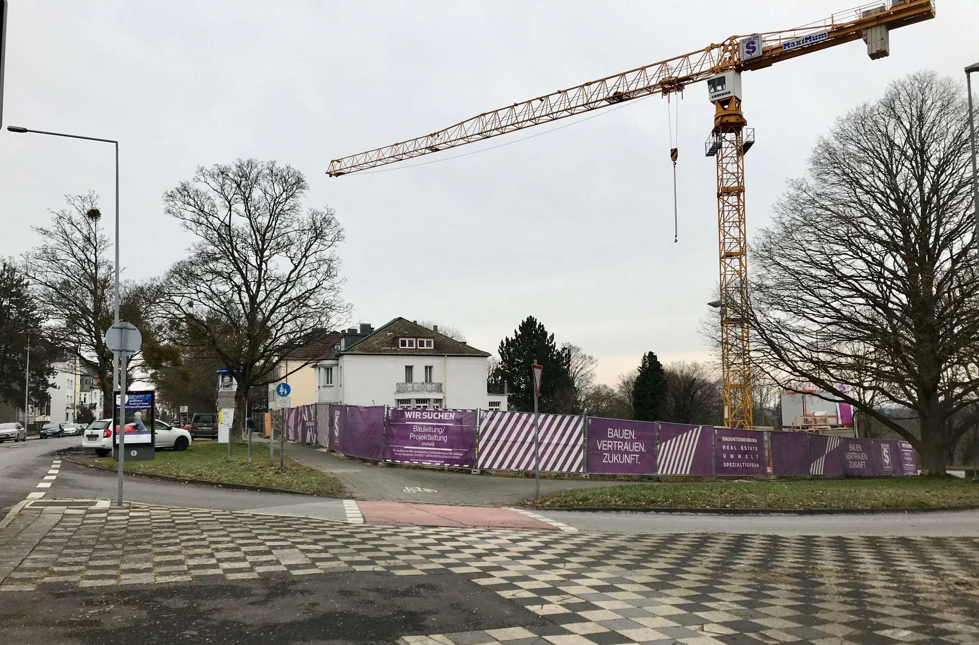 Hier entsteht ein Neubau mit 63 dieser superkleinen Mikrowohneinheiten die jetzt in Aachen an allen Ecken aus dem Boden sprießen. Nur für die Hälfte stehen in der Tiefgarage Pkw-Plätze zur Verfügung. Befürchtet wird ein zunehmender Parkdruck.