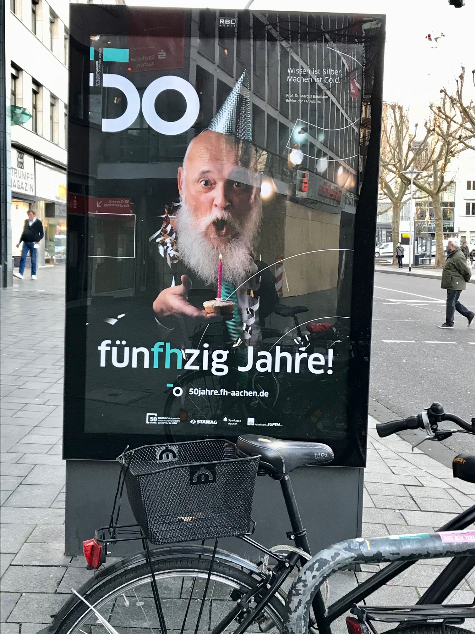 Zur Zeit findet Lehre unter Corona-Bedingungen statt. Und das scheint weitgehend ohne Ausfall zu klappen. „Wissen ist Silber – Machen ist Gold“ steht auf den Plakaten der Fachhochschule. Ein cooles Motto für das Jubiläumsprogramm. Alles nachzulesen unter fh-aachen.de