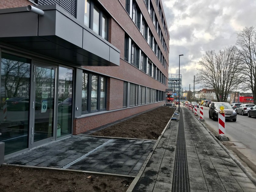 Rund 400 Mitarbeiterinnen und Mitarbeiter steuern jetzt jeden Morgen den Eisenbahnweg an (außer denen, die im Homeoffice arbeiten können). Viele von ihnen fahren offenbar durch den Freunder Weg, wo sie zusammen mit den orangenen großen und kleinen Wagen des Stadtbetriebs für eine Zunahme des Autoverkehrs sorgen. Etliche Anwohner sind genervt und möchten etwas unternehmen.