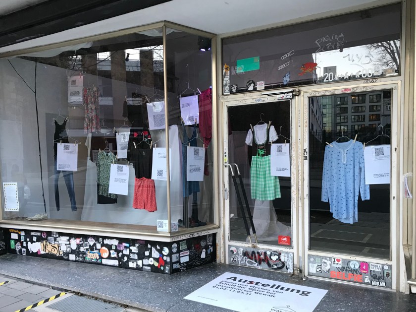 Journalistin Beatrix Wilmes – tätig für die WDR-Sendung Frau tv – hat diese Sicht auf sexualisierte Straftaten aufgegriffen und sie mit der Ausstellung „Was ich anhatte …“ aufbereitet. Die Ausstellung zeigt Kleidungsstücke, die Frauen bei einer Vergewaltigung getragen haben. Und es wird sehr deutlich: Wie eine Frau angezogen ist, hat nichts mit der Tat zu tun. Es sind ganz alltägliche Hosen, Kleider, Schuhe und Gegenstände, die jede Frau in ihrem Kleiderschrank findet.